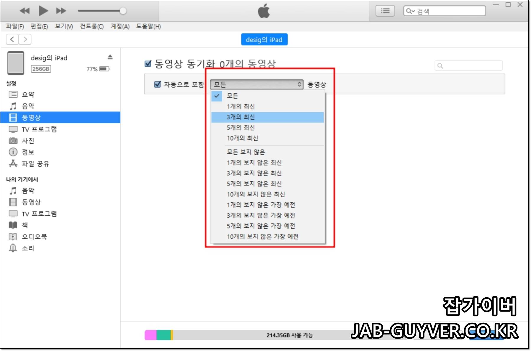 컴퓨터 동영상 사진 아이패드 전송 아이튠즈 설정 동기화 방법 및 안될때