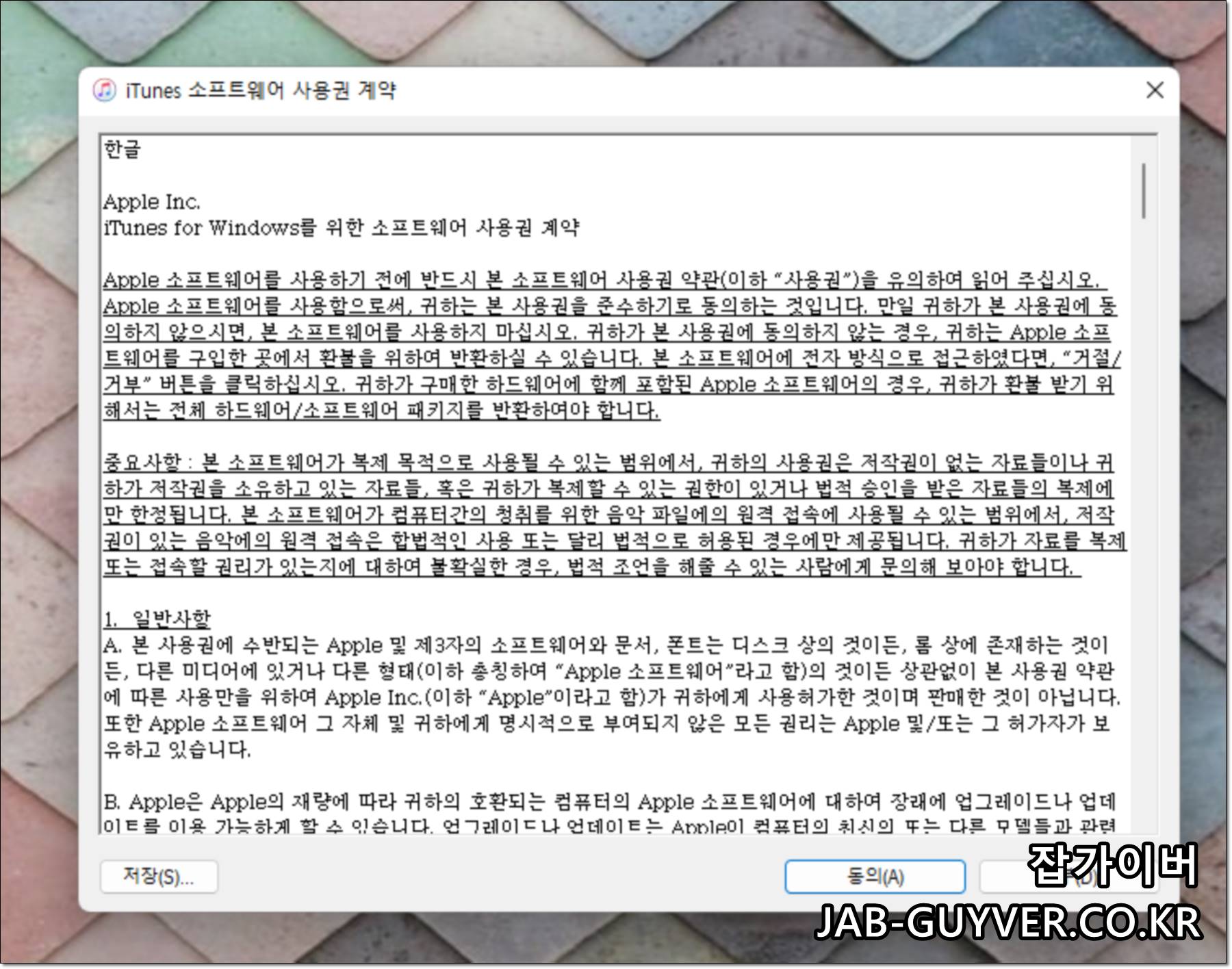 아이튠즈 설치 시 기본약관에 동의해줍니다.
