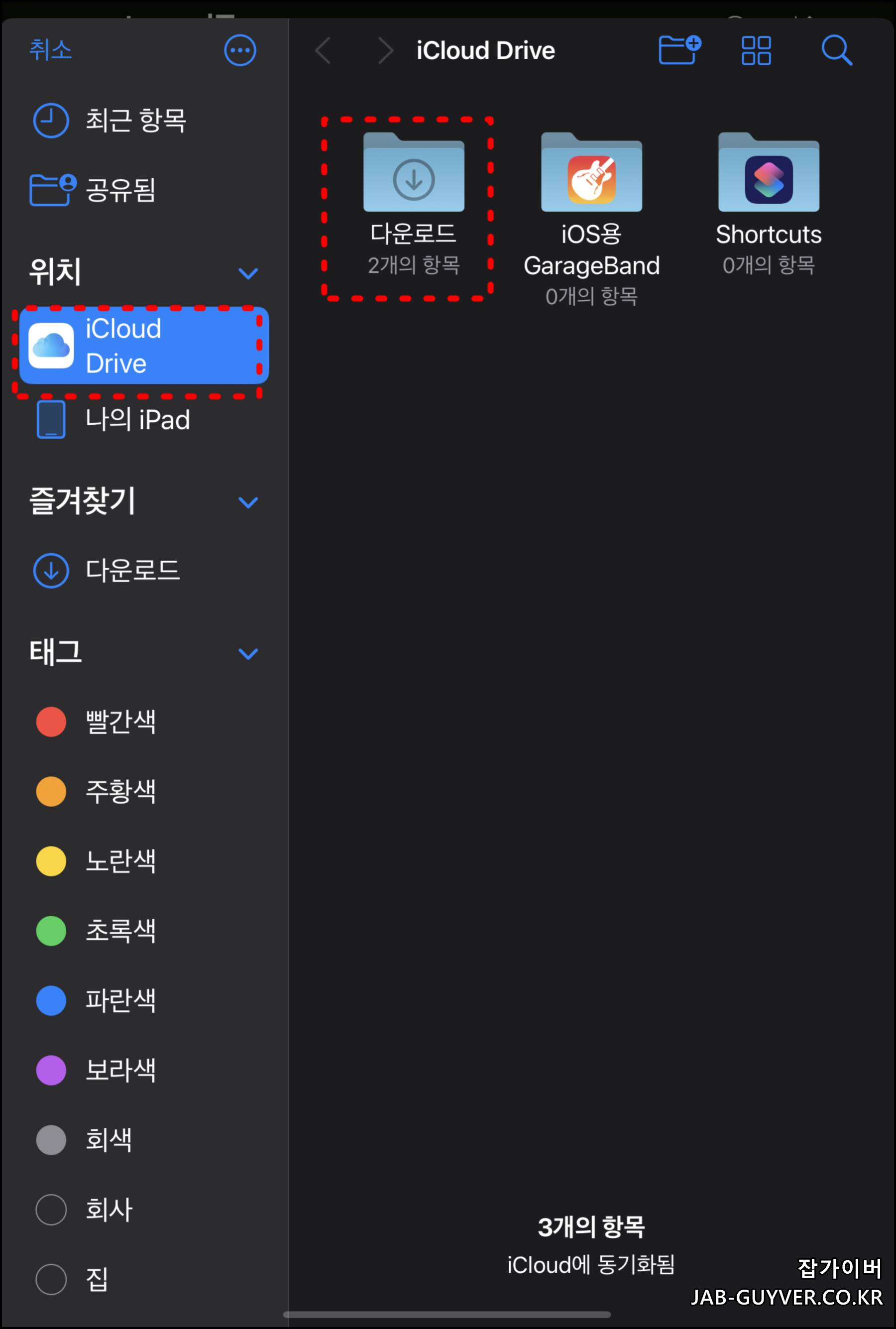 이 위치는 아이패드에서 웹으로 받은 대부분의 파일이 모이는 기본 저장소라고 생각하면 이해하기 쉽습니다.