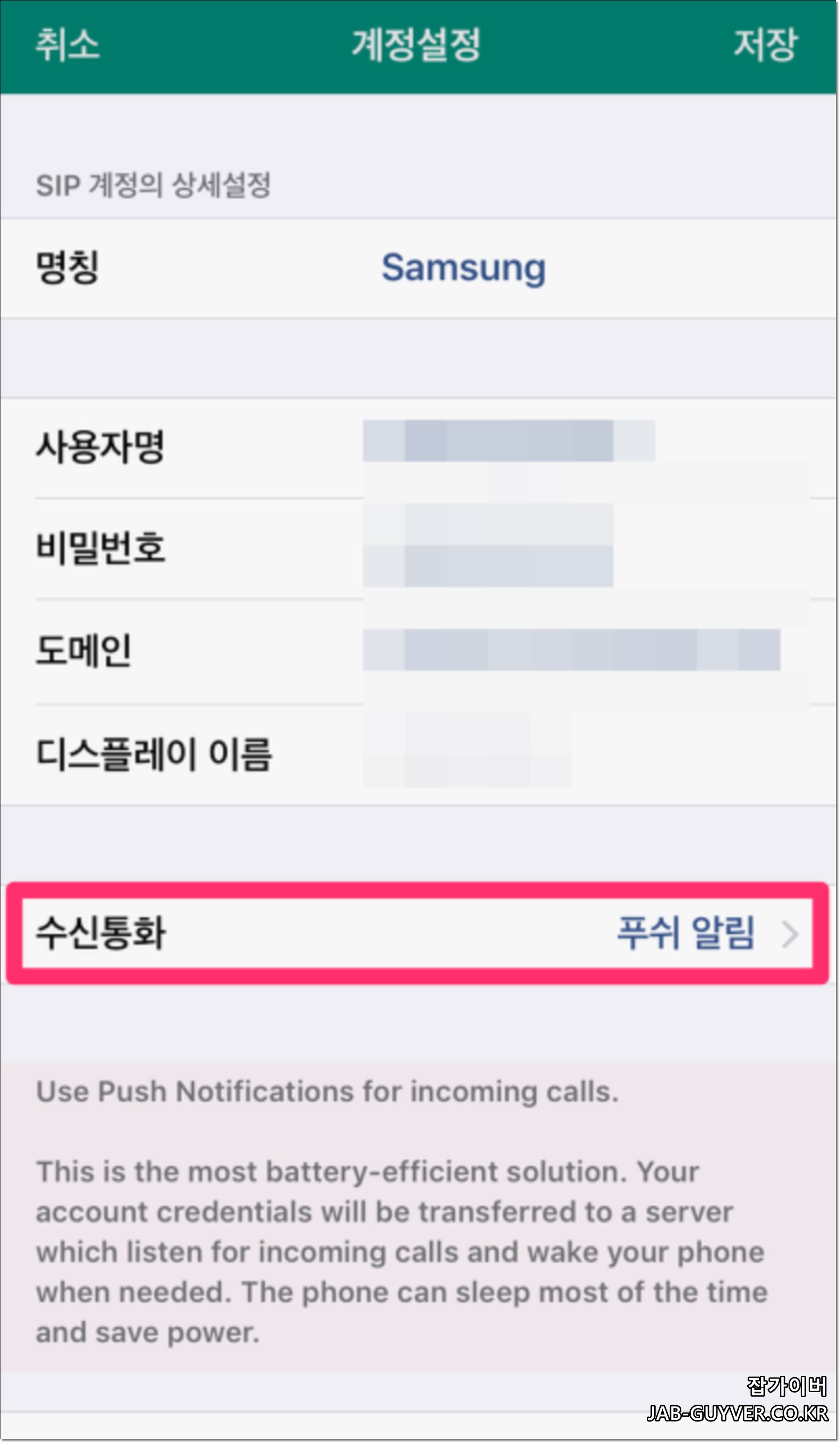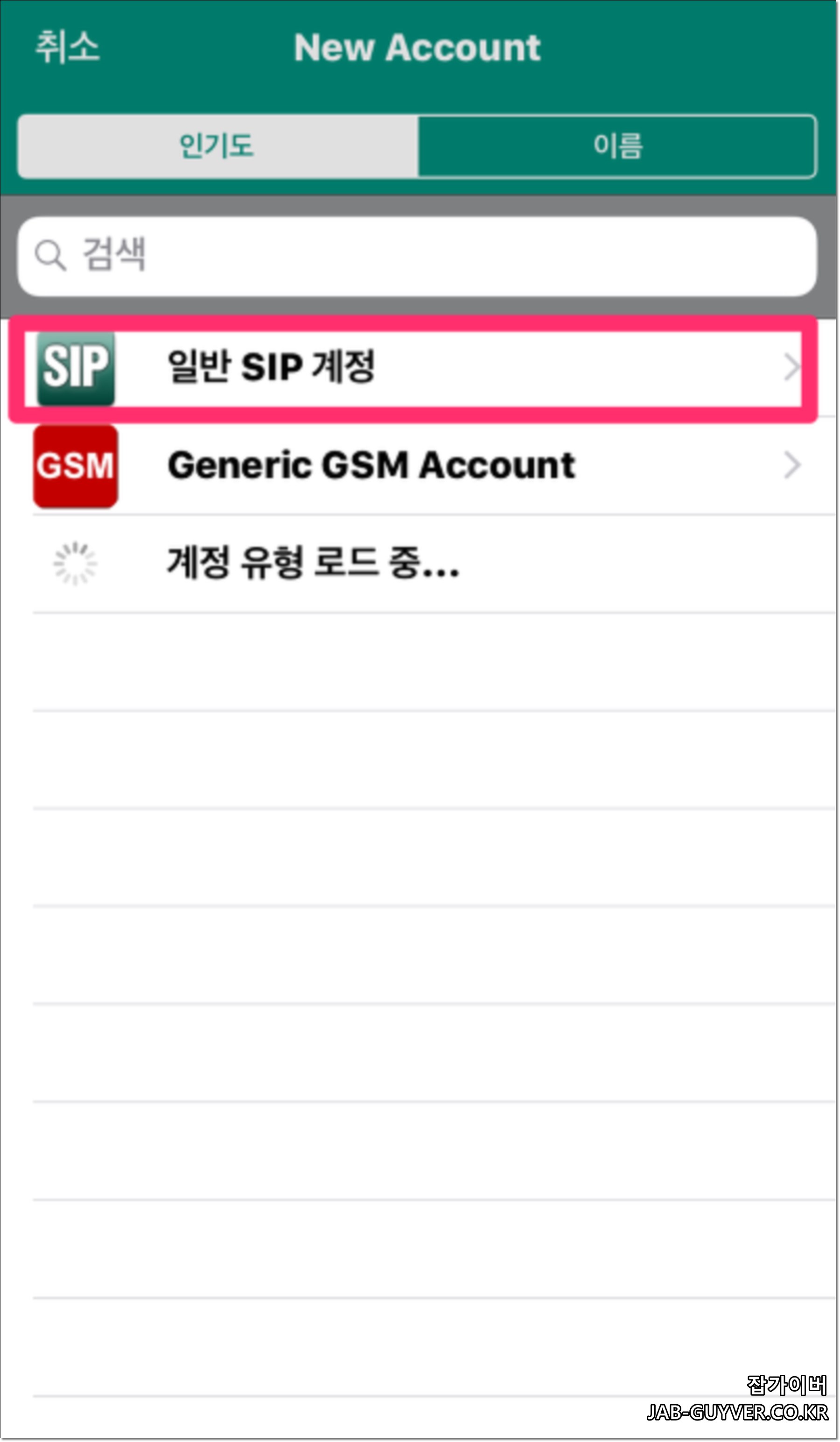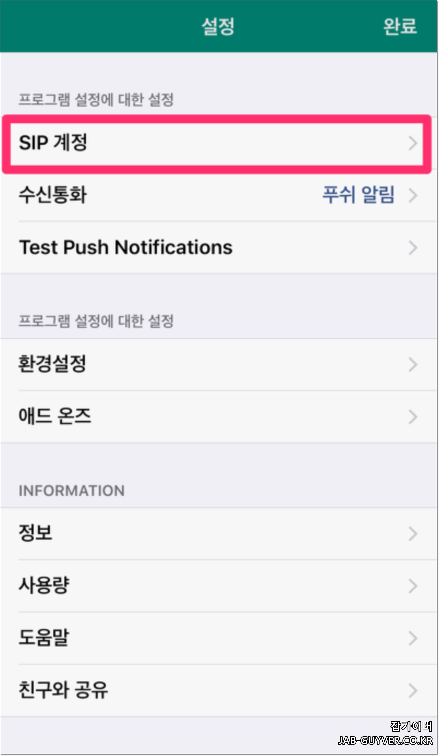 이 후 전화통화 앱을 실행 후 설정에서 SIP 계정 -> 일반 SIP 계정 선택 후 +을 눌러 사용자 정보를 입력해줍니다.