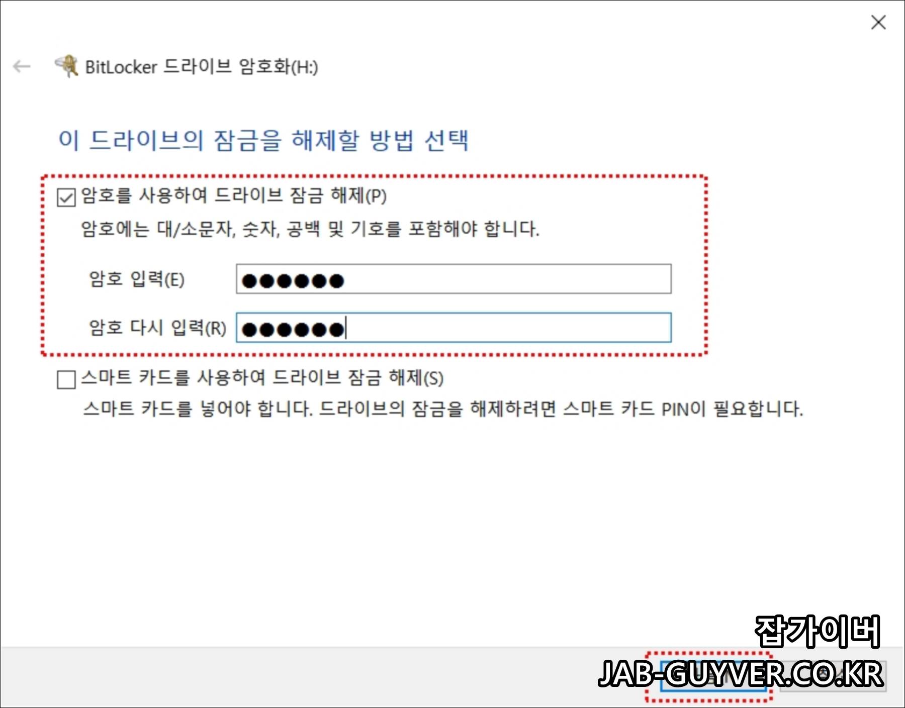이를 통해 현재 설정된 외장하드 비트락커 기능을 비활성화합니다.