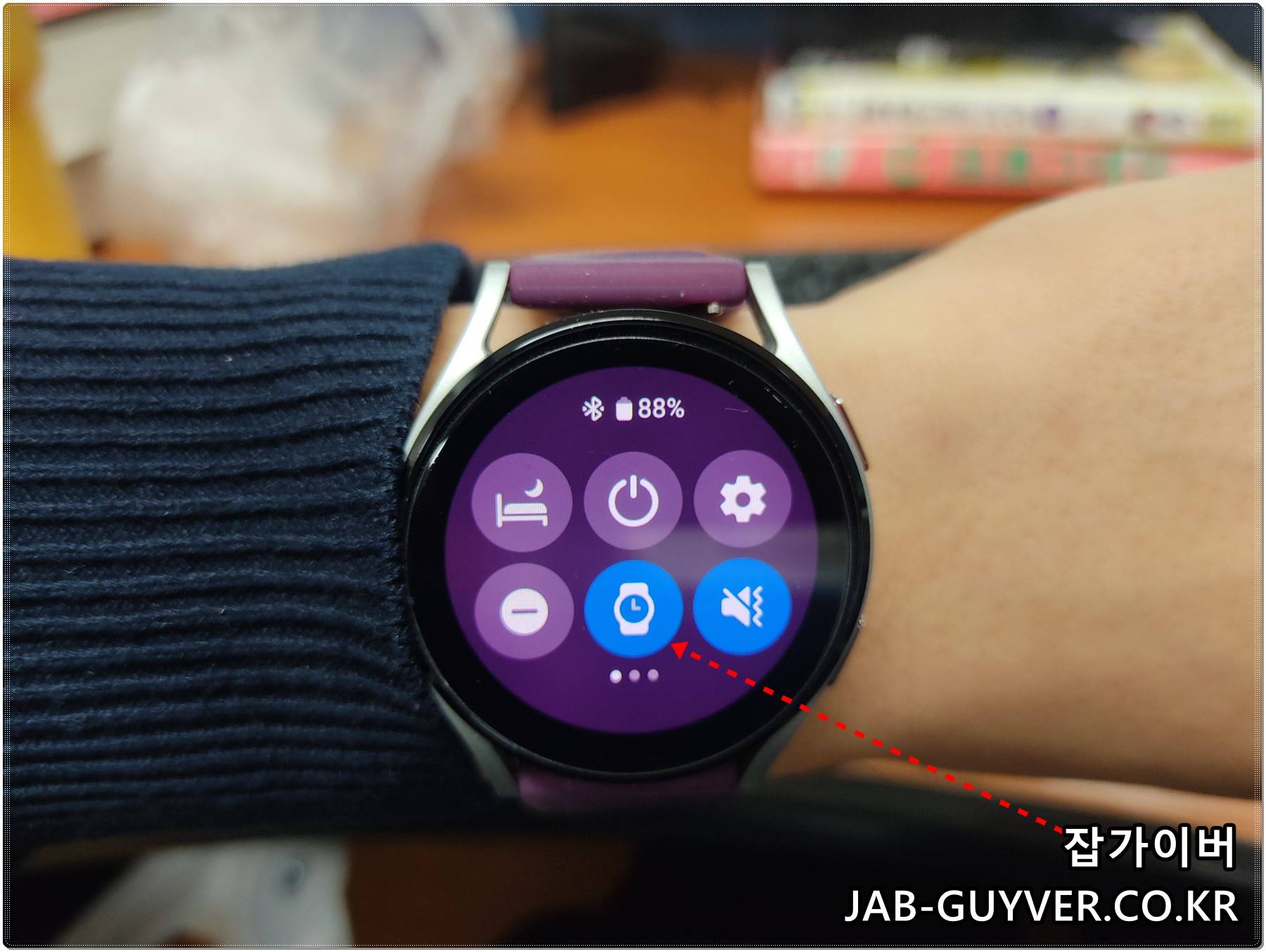 갤럭시워치 화면을 위에서 아래로 쓸어내리면 보느것과 같이 간단하게 갤워치 기능을 끄거나 킬 수 있습니다.