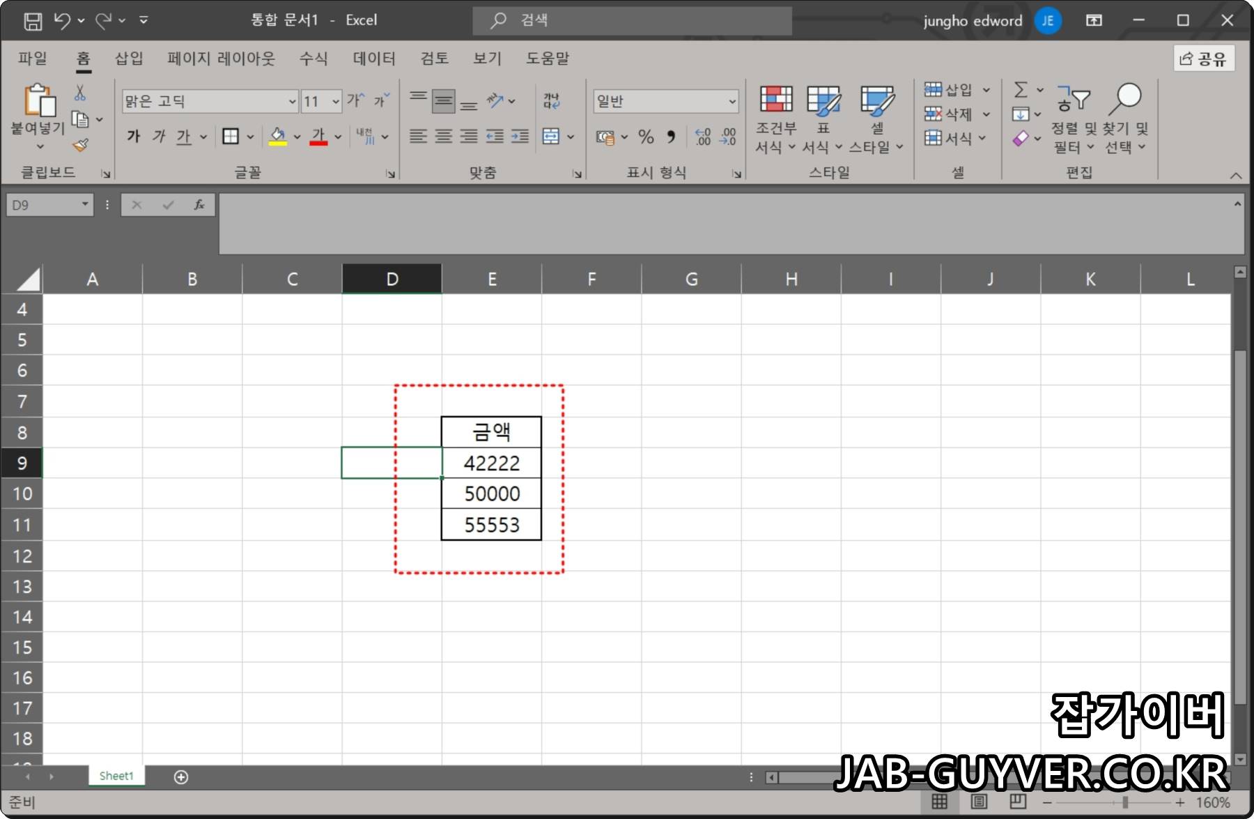중요한 점은 실제 셀 값은 여전히 숫자 42222 그대로이기 때문에, 나중에 합계나 평균을 구할 때도 아무 문제 없이 계산된다는 점입니다. 보여지는 모양만 “원”이 붙은 금액처럼 바뀌는 겁니다.