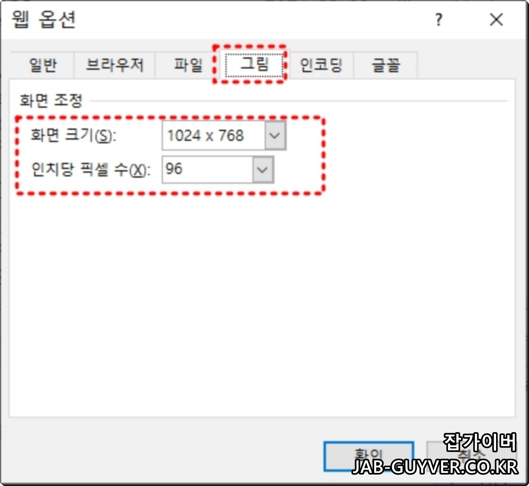 실제로 프레젠테이션이나 문서열람용으로는 96PPI로 설정해도 무방하며 그럼 엑셀 저장 시 용량을 크게 압축할 수 있으며 이는 엑셀에 사진파일이 많다면 용량줄이기에 최적화할 수 있습니다.