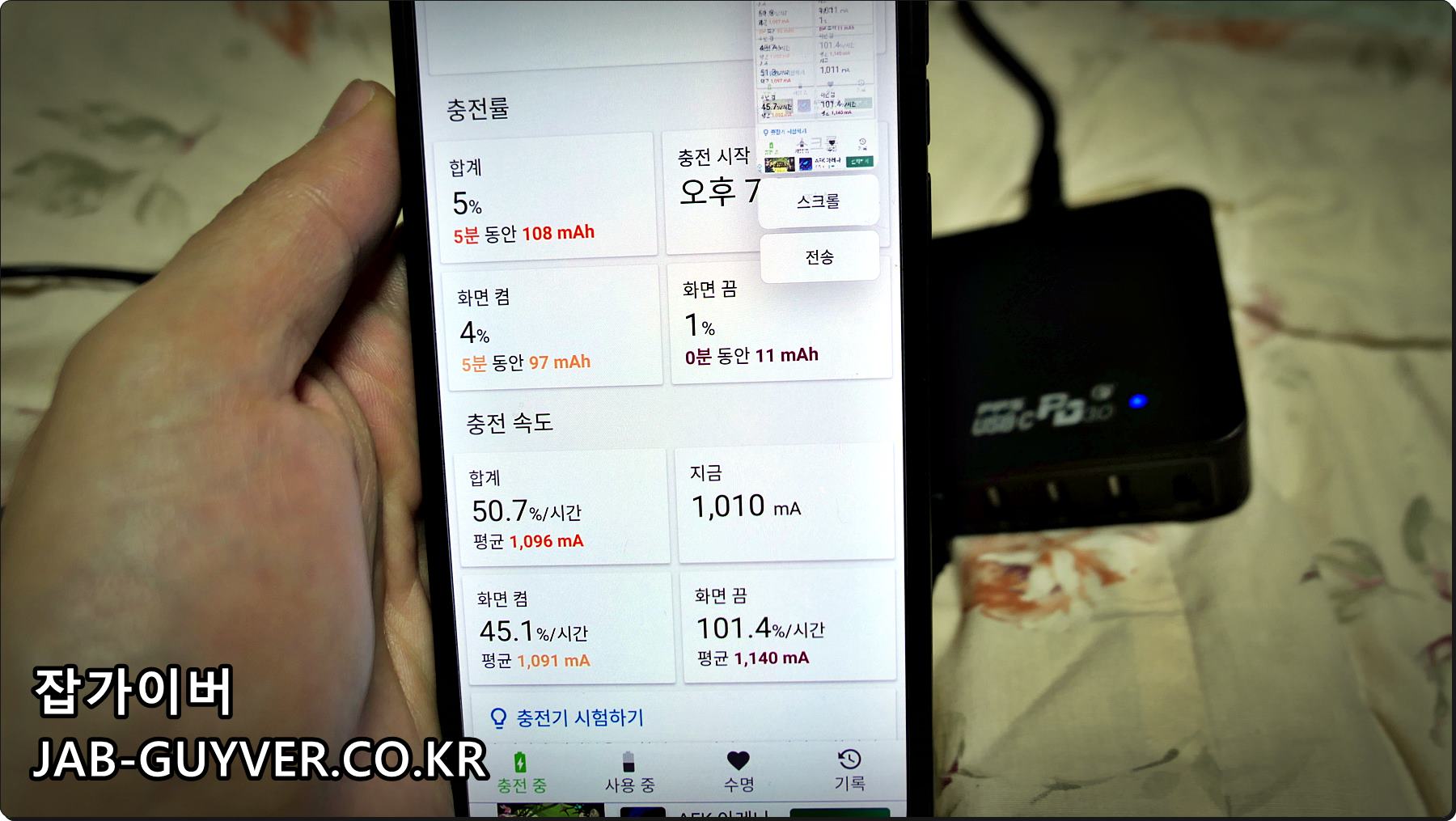 충전케이블 확인이 어렵다면 핸드폰 앱에서 배터리 수명측정 및 충전앱을 설치해서 확인해보면 충전 시 충전속도 및 전압등을 확인할 수 있습니다.