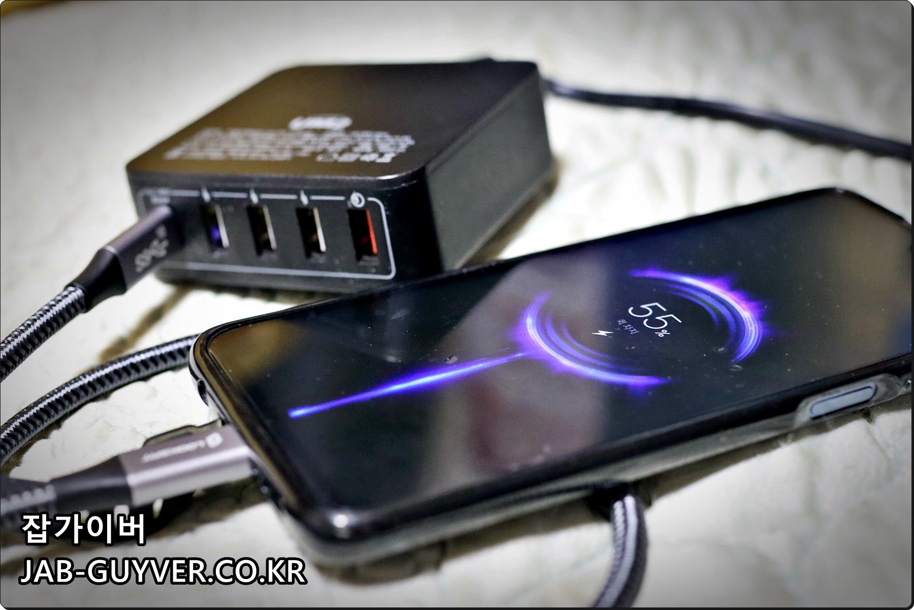 이는 충전허브 뿐만 아니라 멀티탭을 사용하는 경우도 동일하며 노트북이나 데스크탑 PC에 있는 USB 포트를 통해 충전시에도 충전전압이 불안정하며 충전속도가 느려집니다.
