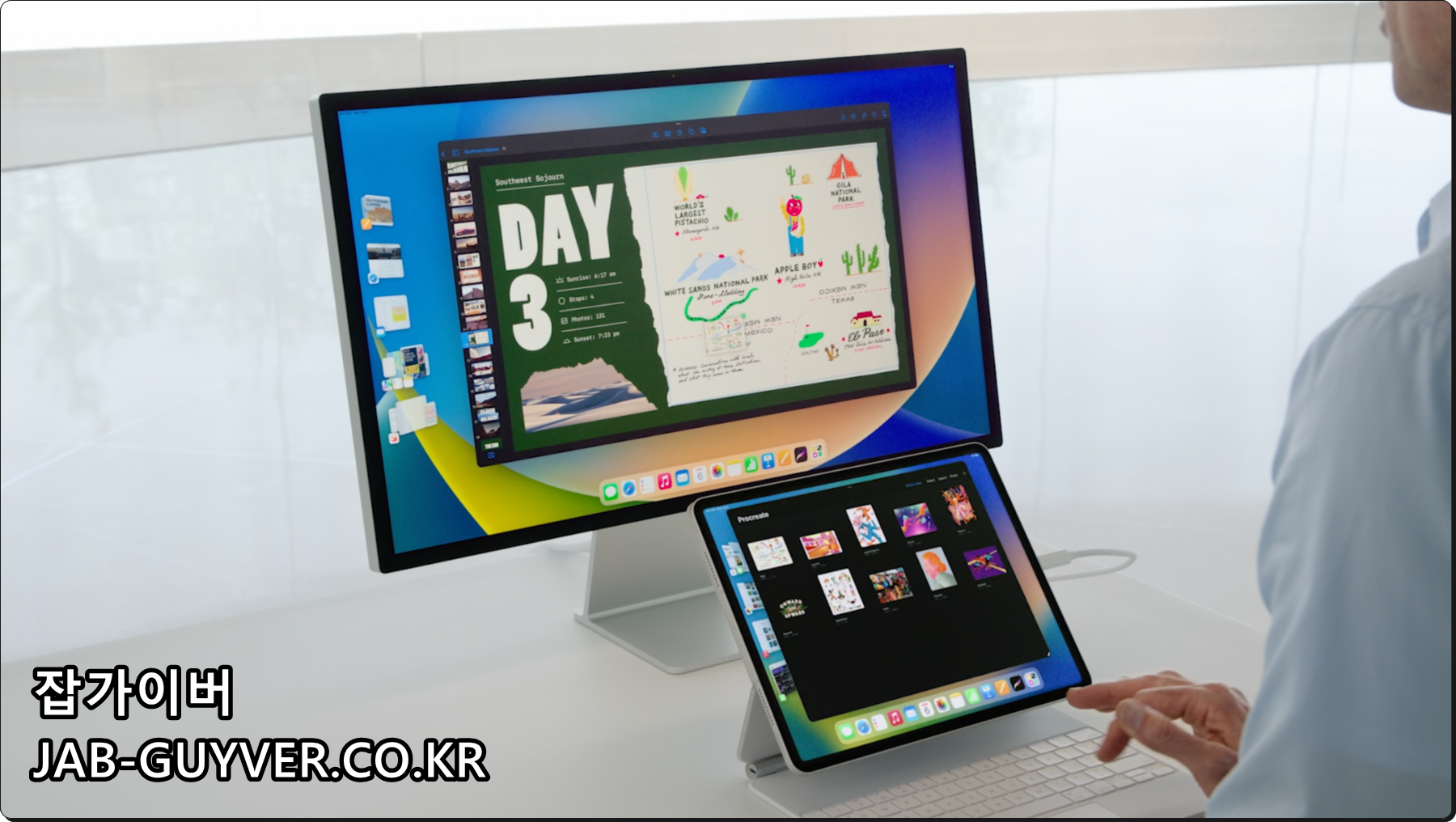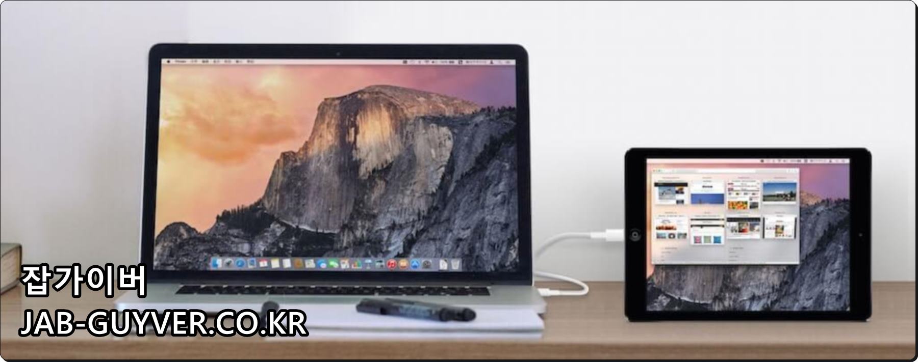 가장 쉬운 조합은 애플의 맥북이나 아이맥을 아이패드 프로, 아이패드에어, 아이패드 미니등과 연결해서 MACOSX 사이드카 기능을 사용하는 방법이 있습니다.
