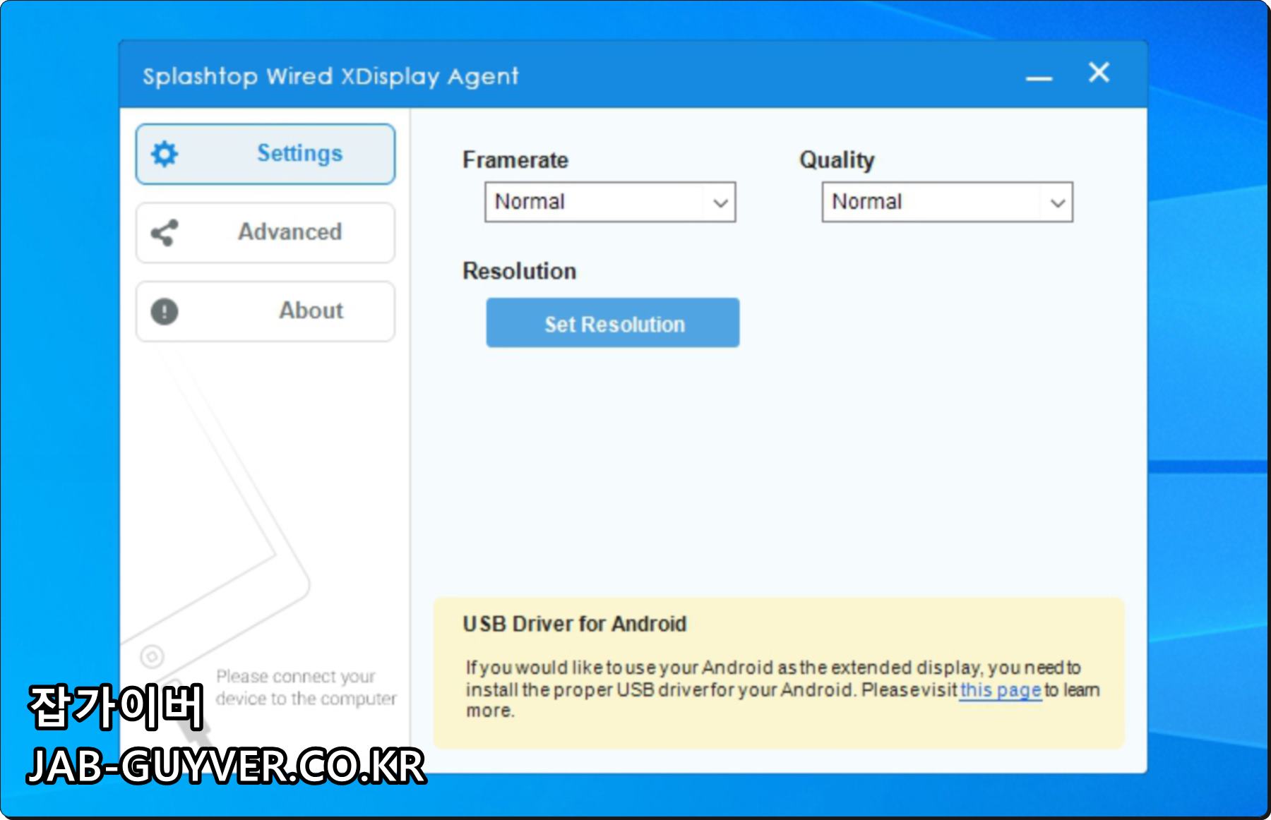 - 태블릿과 PC의 해상도 차이로 화면 출력이 안 될 수 있으니 디스플레이 설정에서 해상도를 맞춰주세요
