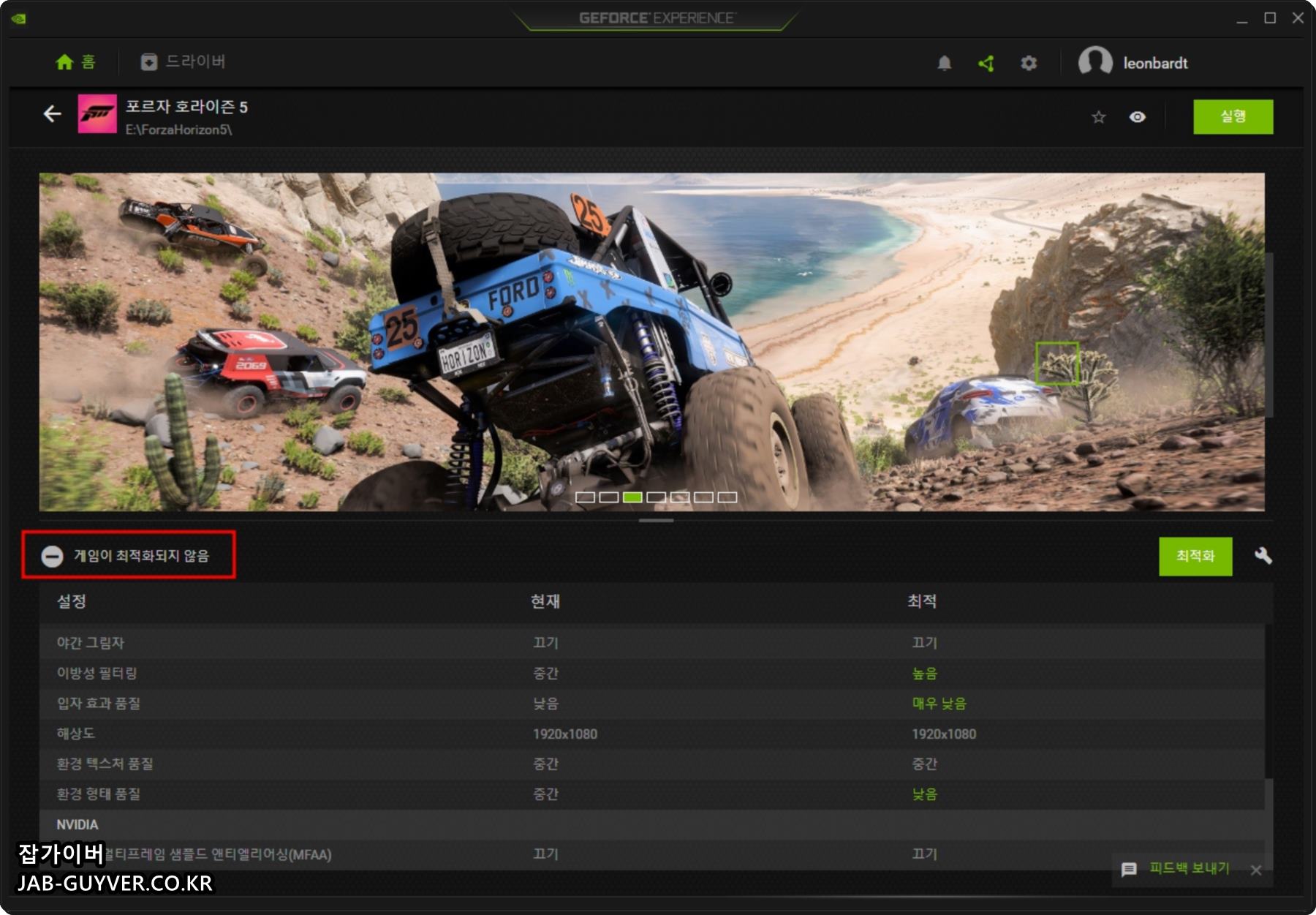 Geforce Experience 게임 최적화