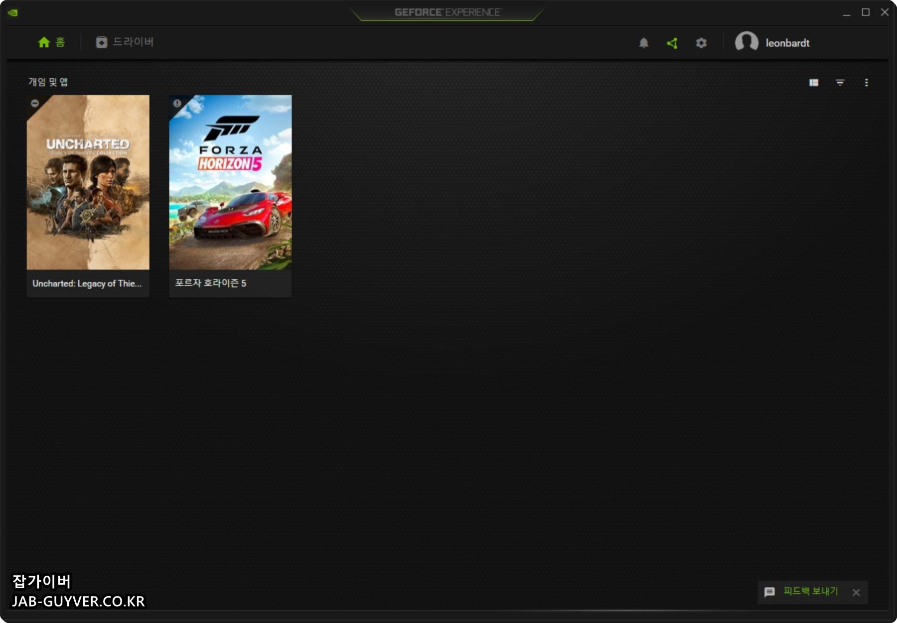 현재 저의 경우 언챠티드4와 포르자 호라이즌5 2개의 게임이 무설치 버전으로 설치되어 있지만 자동으로 표시됩니다.