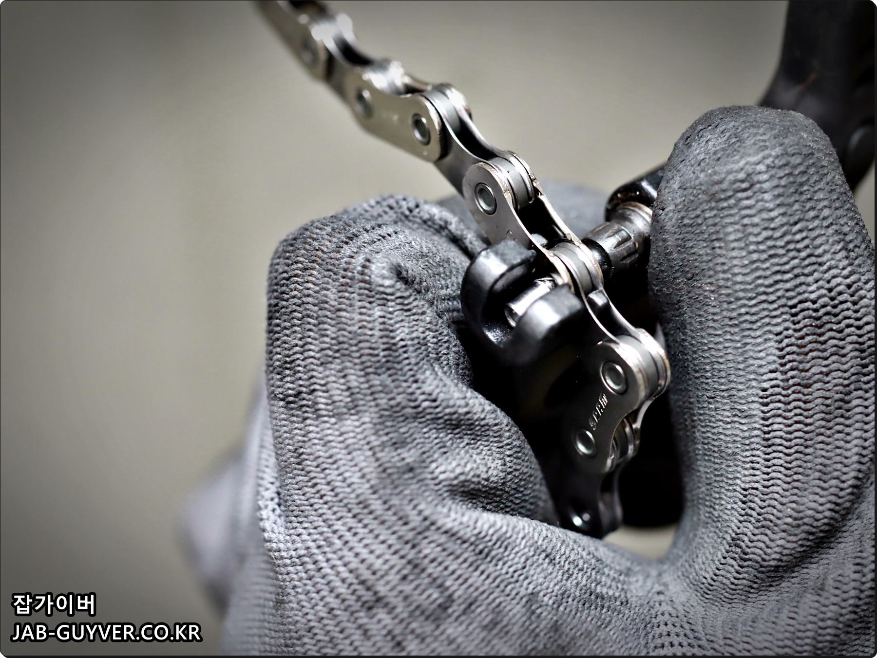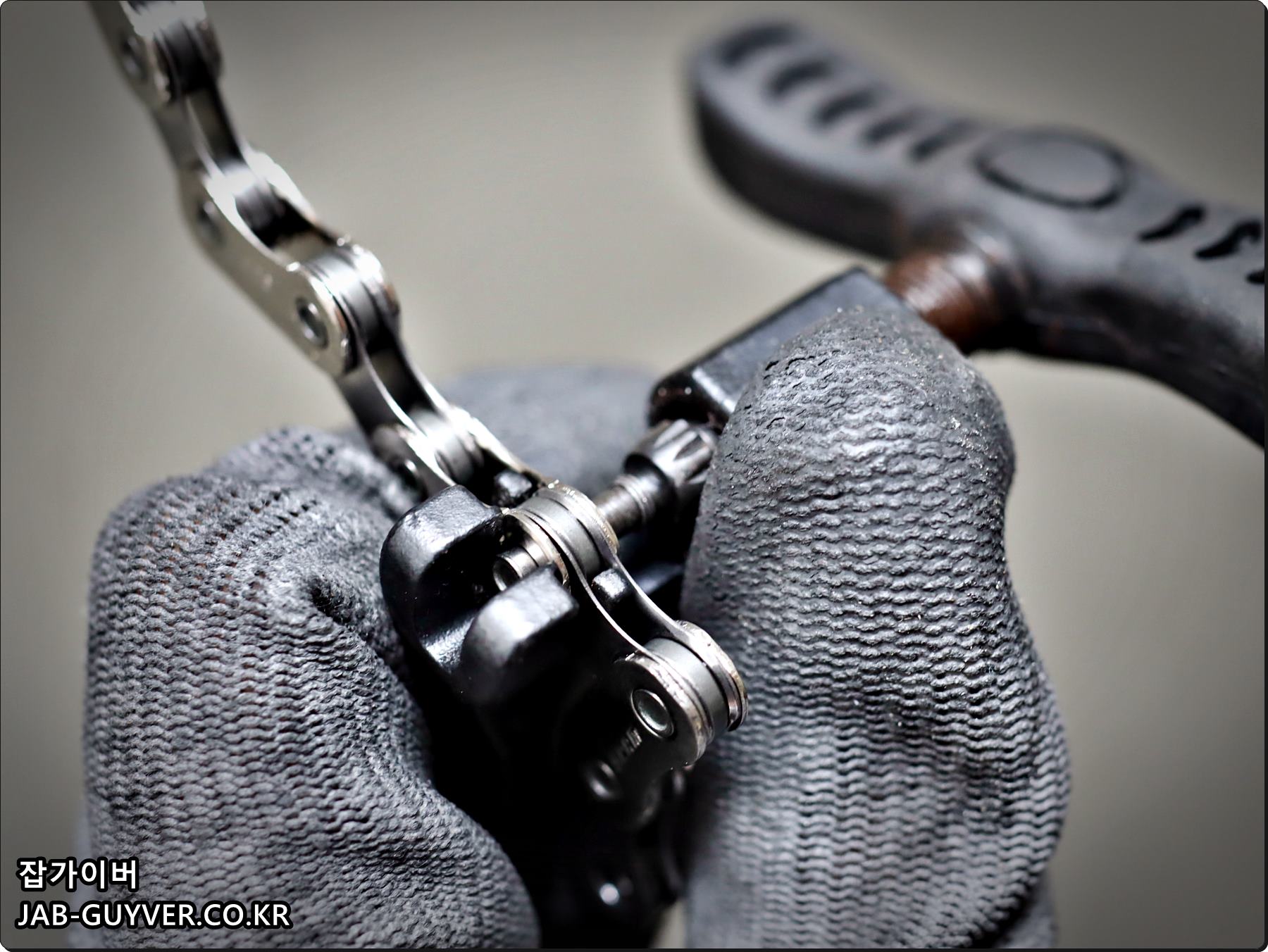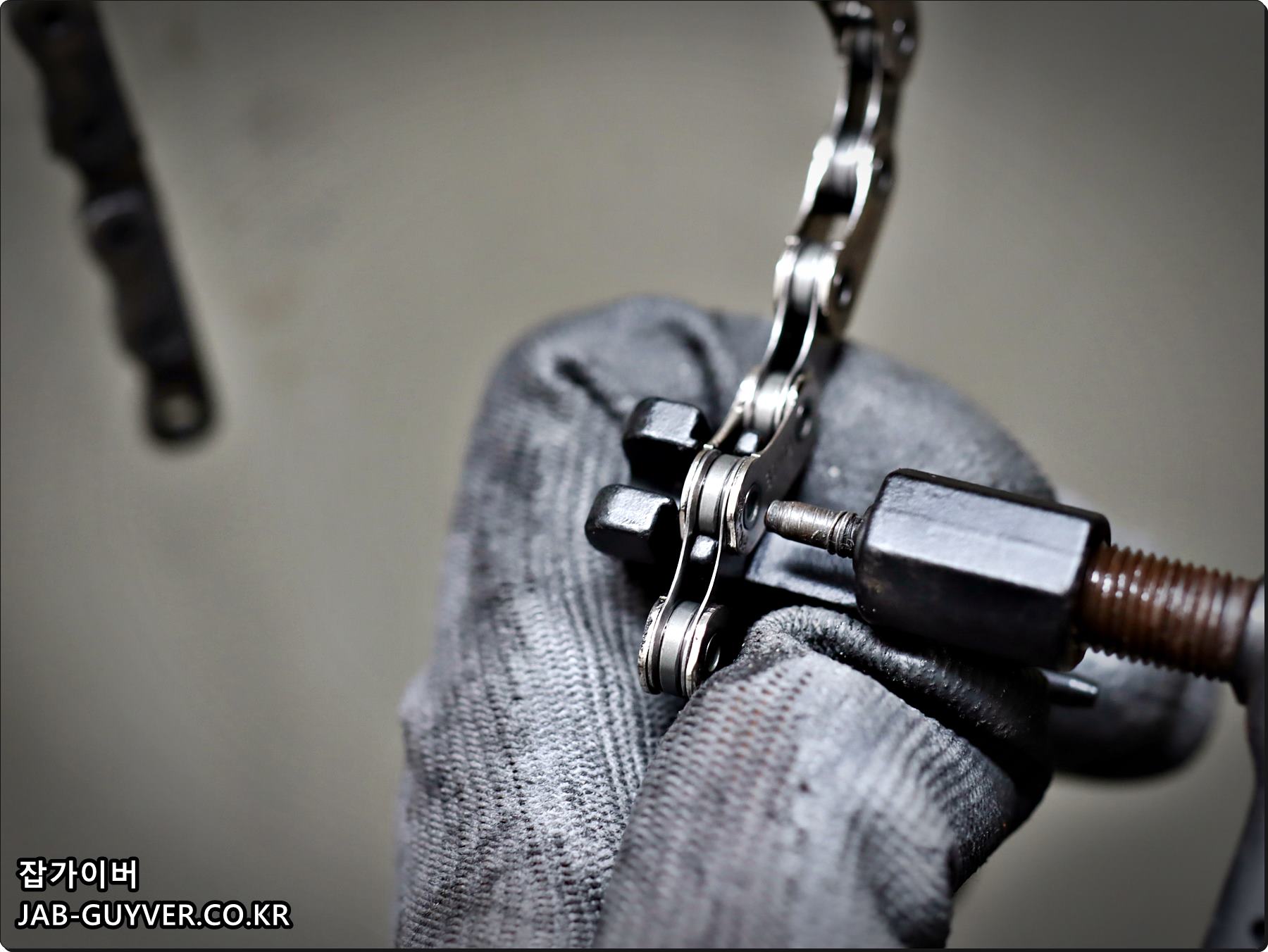 체인핀을 뽑아 체인길이를 조절하며 이때 저 같은 경우는 상황에 따라 1마디정도는 여유있게 잘라준 뒤 마무리합니다.