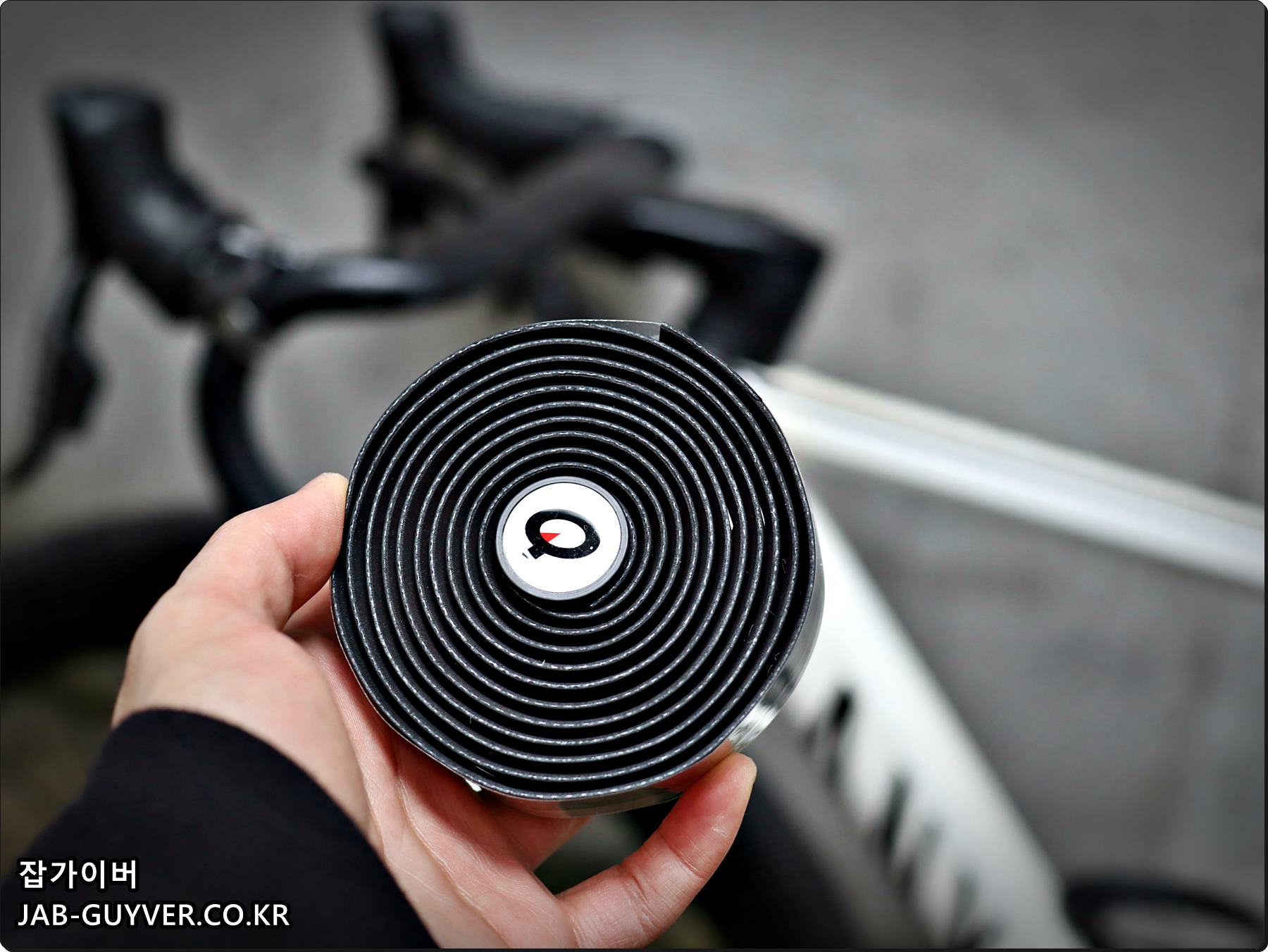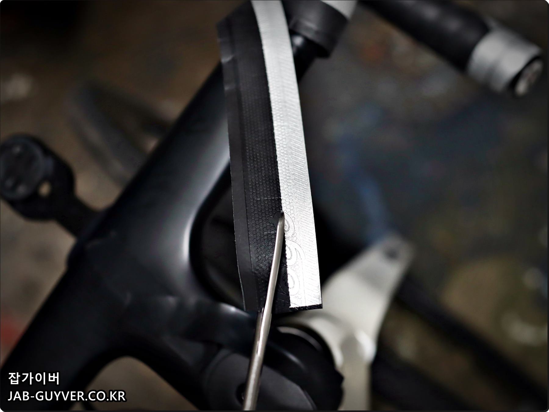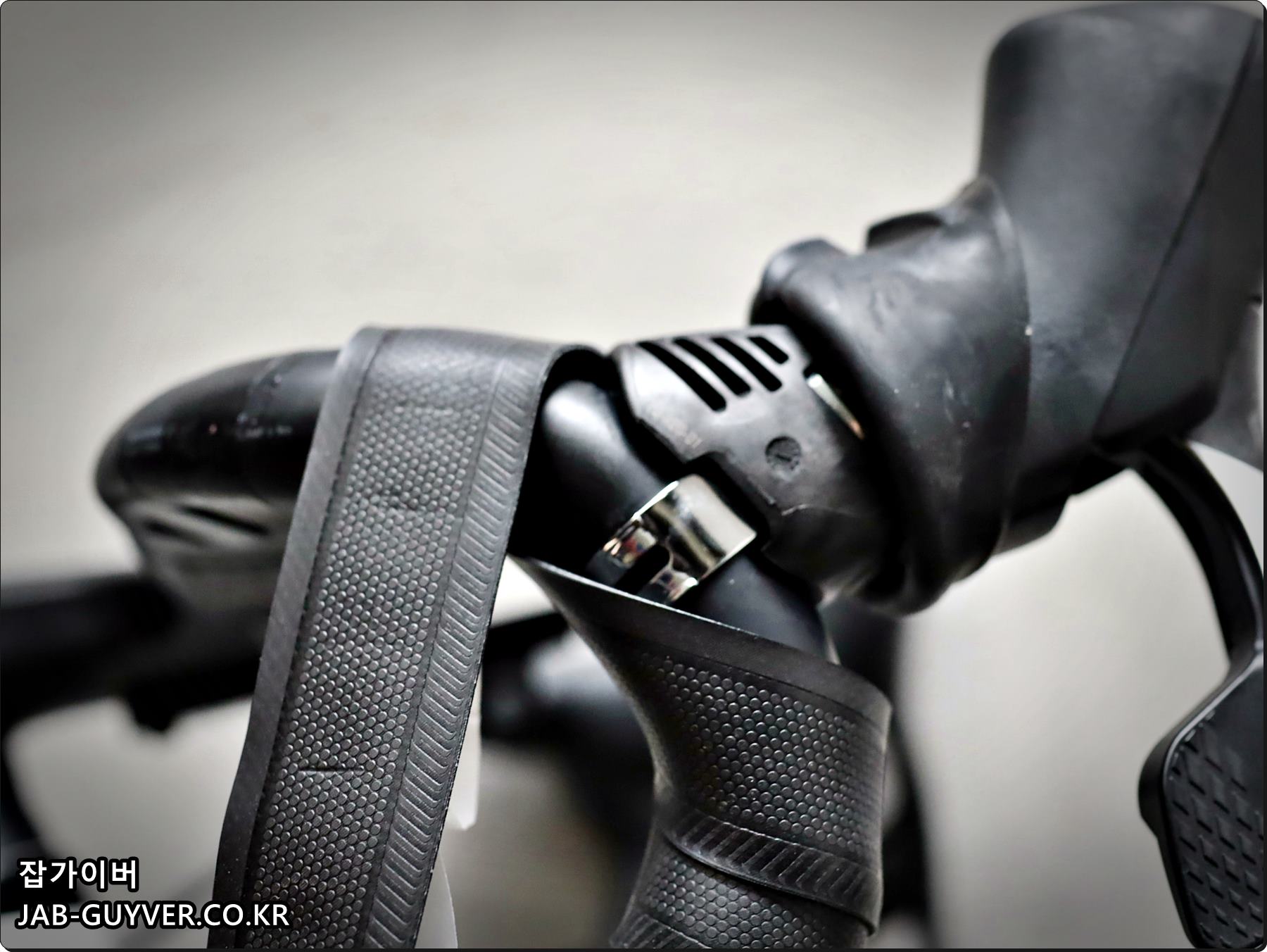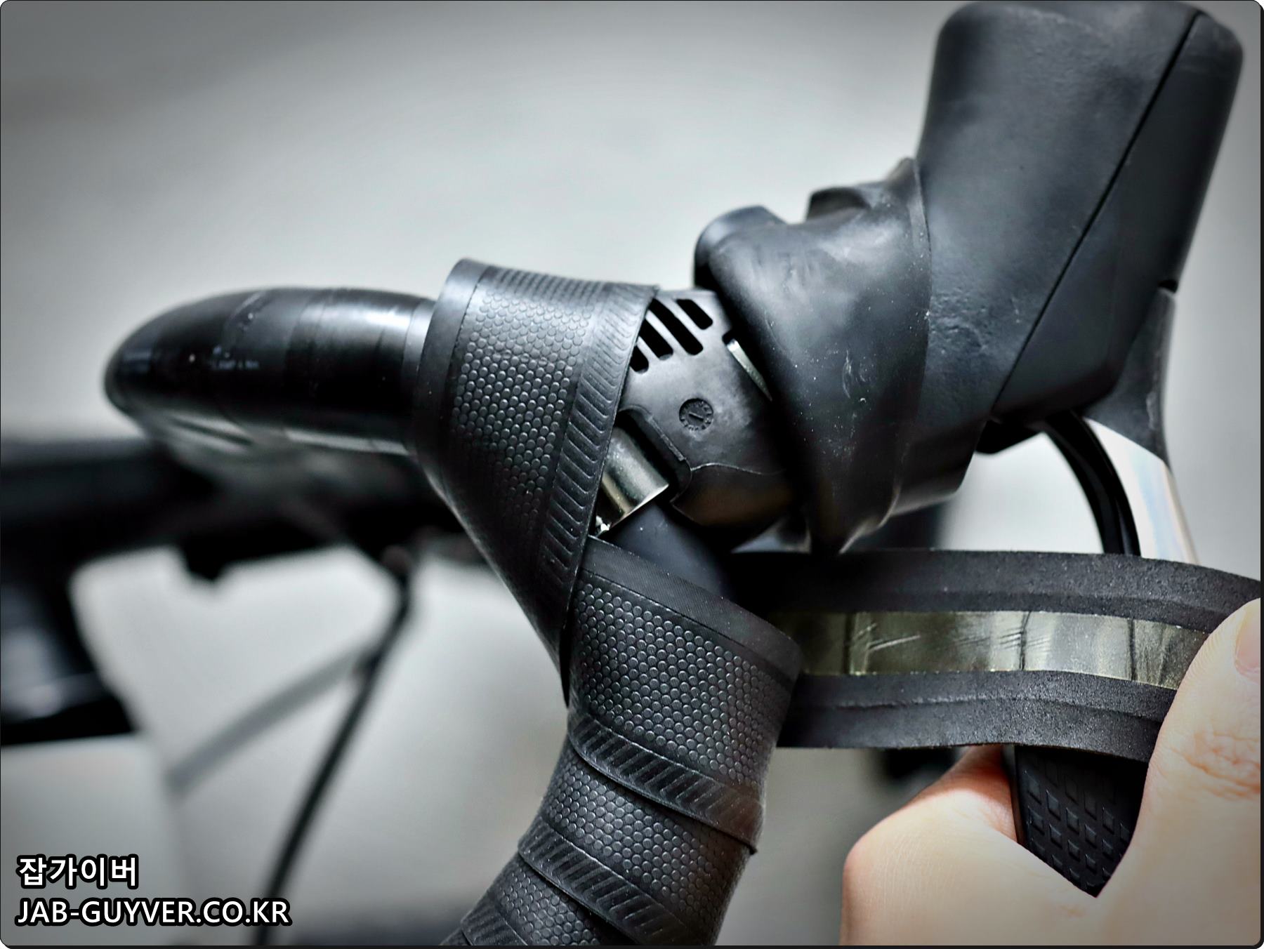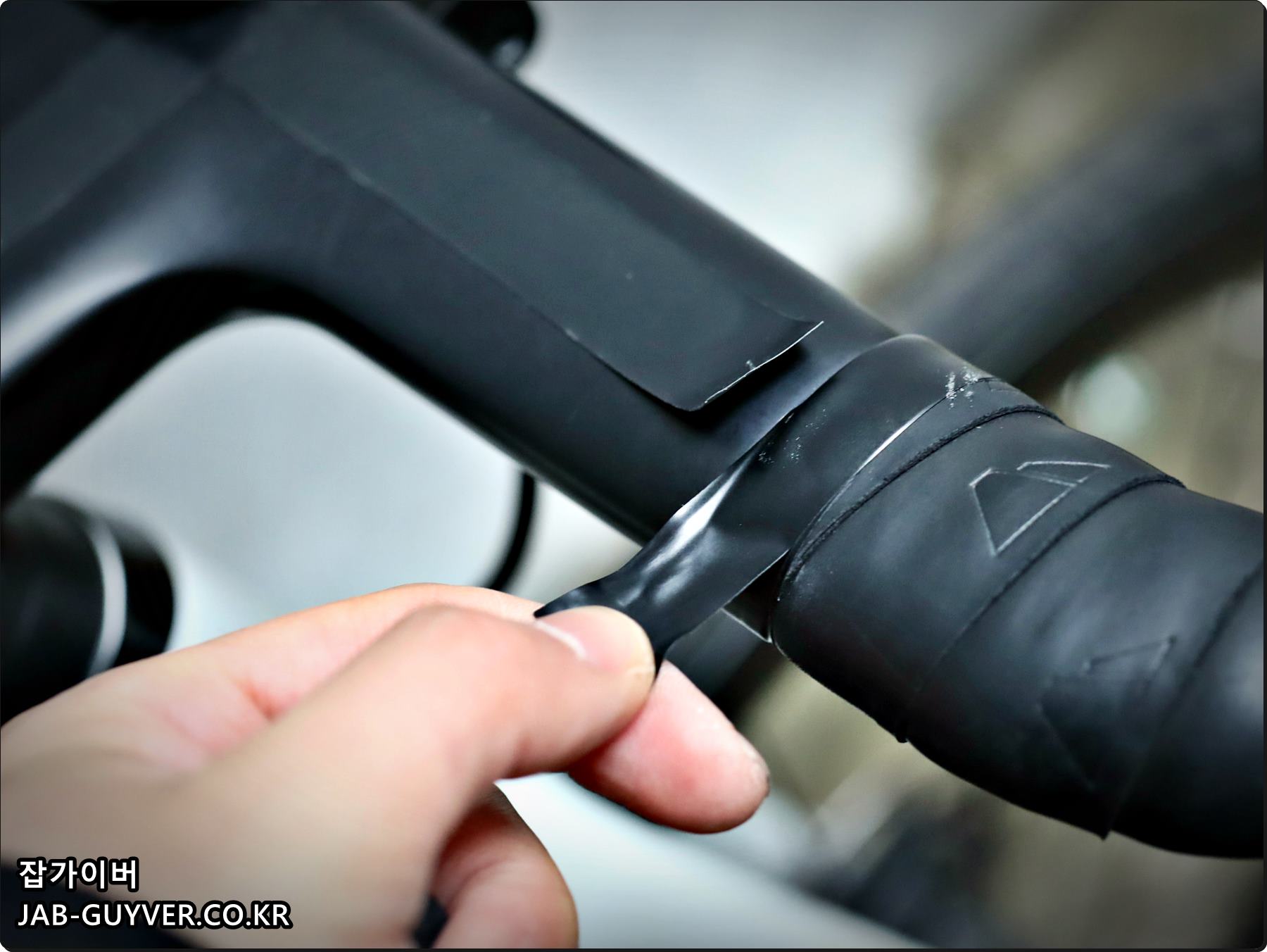 다음 자전거 바테잎을 감아주며 이때 간격은 일정하게 그리고 씹히거나 뜨는곳이 없는지 확인하면서 감아줍니다.