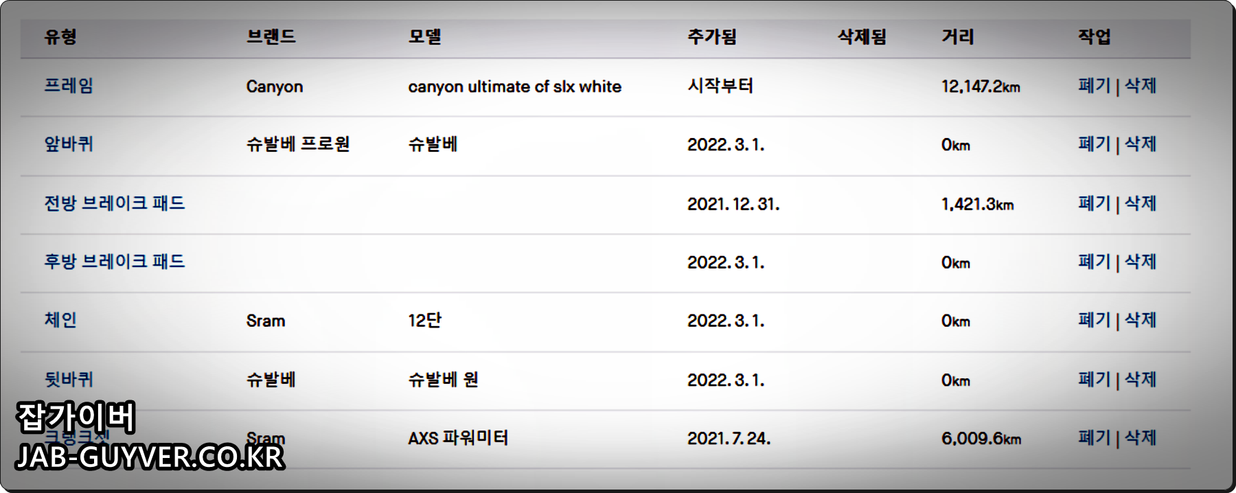자전거 마일리지 부품수명 확인