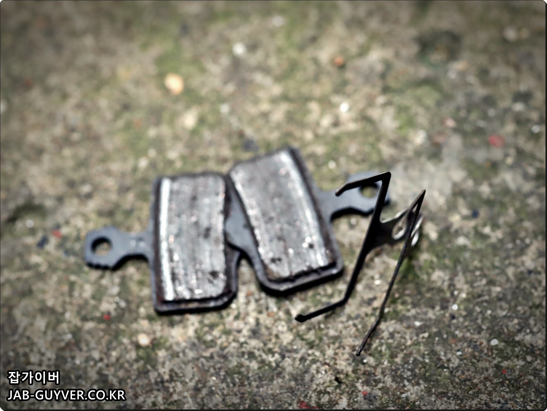 기존에 사용하던 디스크브레이크 패드로 마모와 이물질이 많이 묻어있습니다.