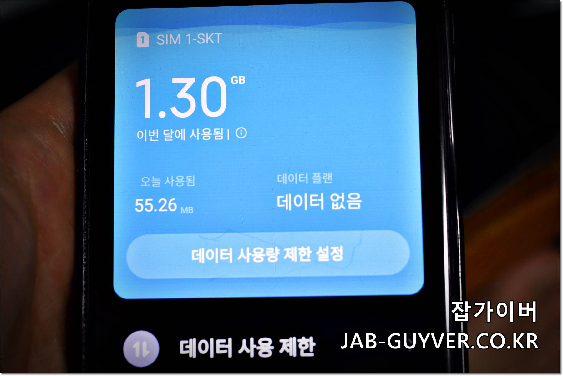 핸드폰에서 사용되는 모바일데이터의 사용량을 오늘 및 이번 달 사용량을 확인할 수 있으며 꾹 눌러보면 데이터 사용량을 제한할 수 있습니다.