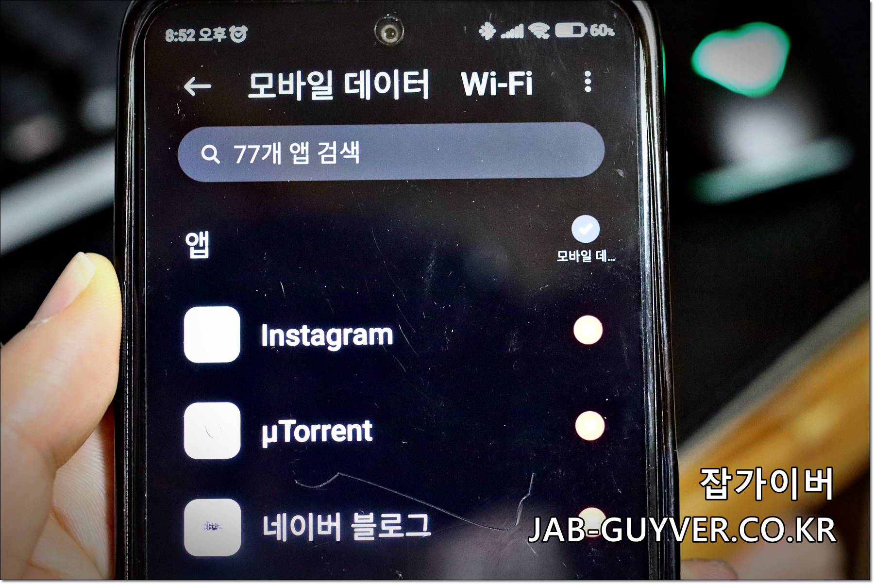저는 SNS인 인스타그램이나 토렌트, 블로그 등은 와이파이 상태에서만 인터넷 연결이 되도록 설정해놨습니다.