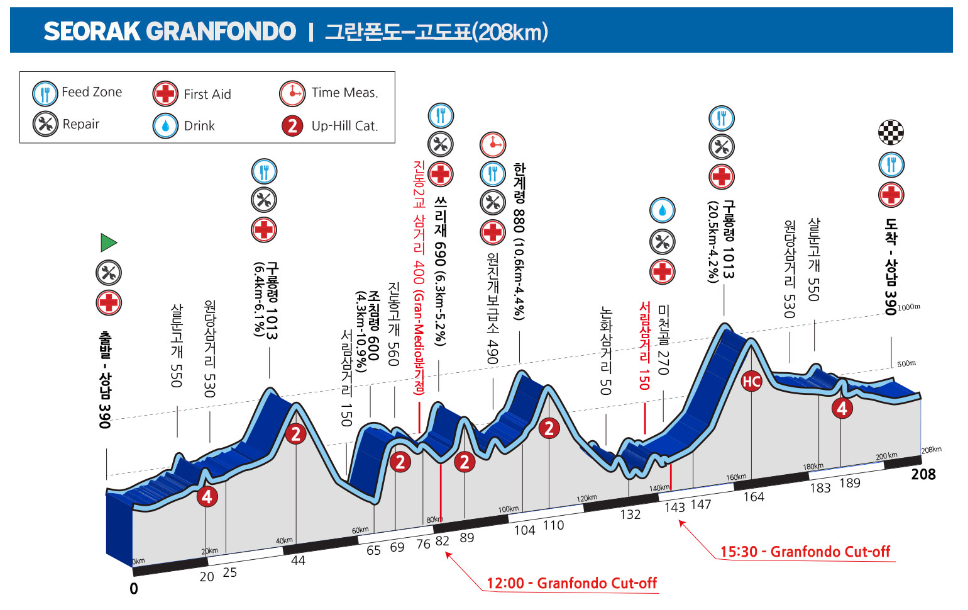 - 제한 시간: 그란폰도 12시간 (넷타임), 메디오폰도 7시간