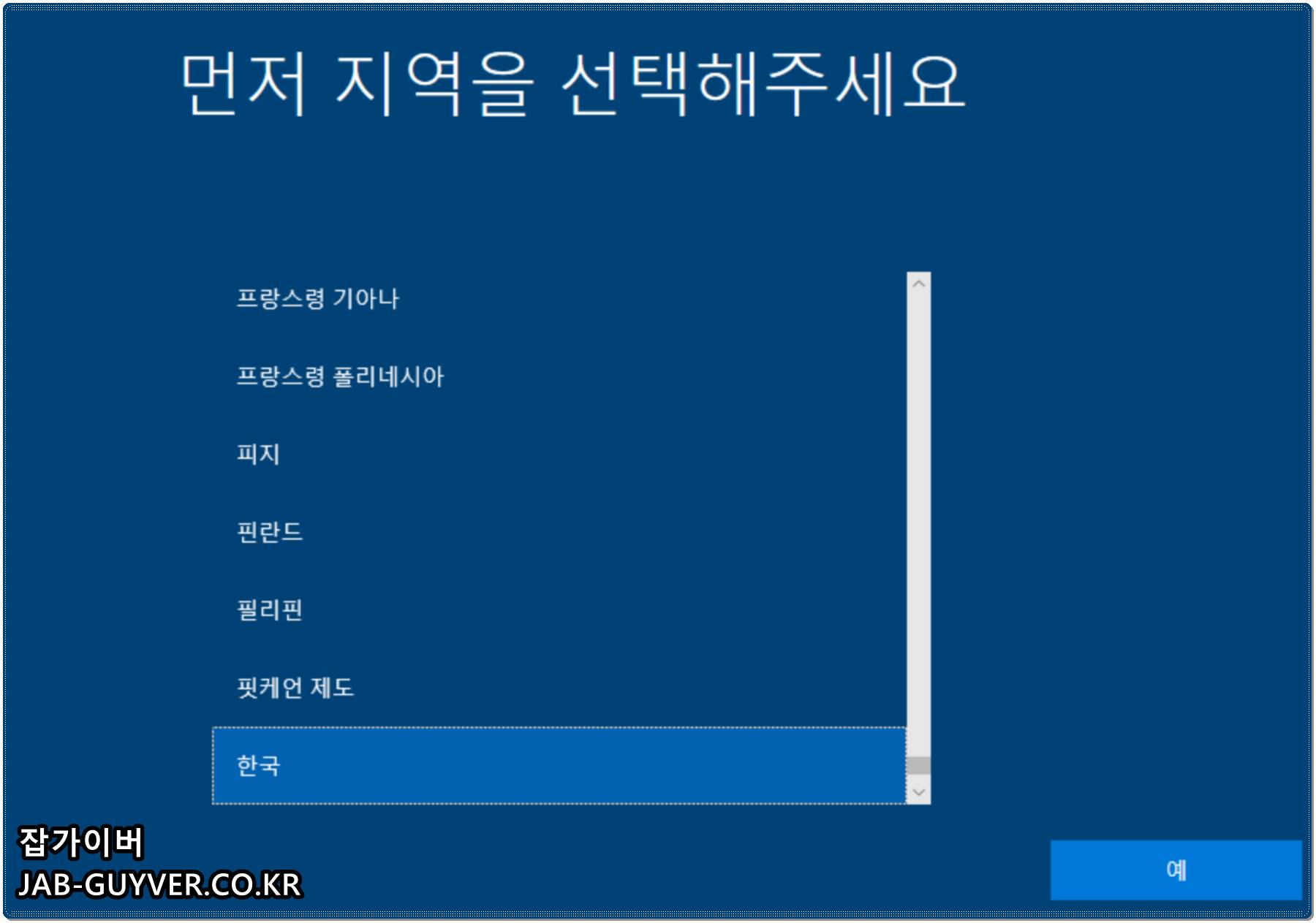 설치 시 설치할 윈도우 언어 및 시간, 키보드 등 설정이 가능하며 별도의 설정은 필요없습니다.