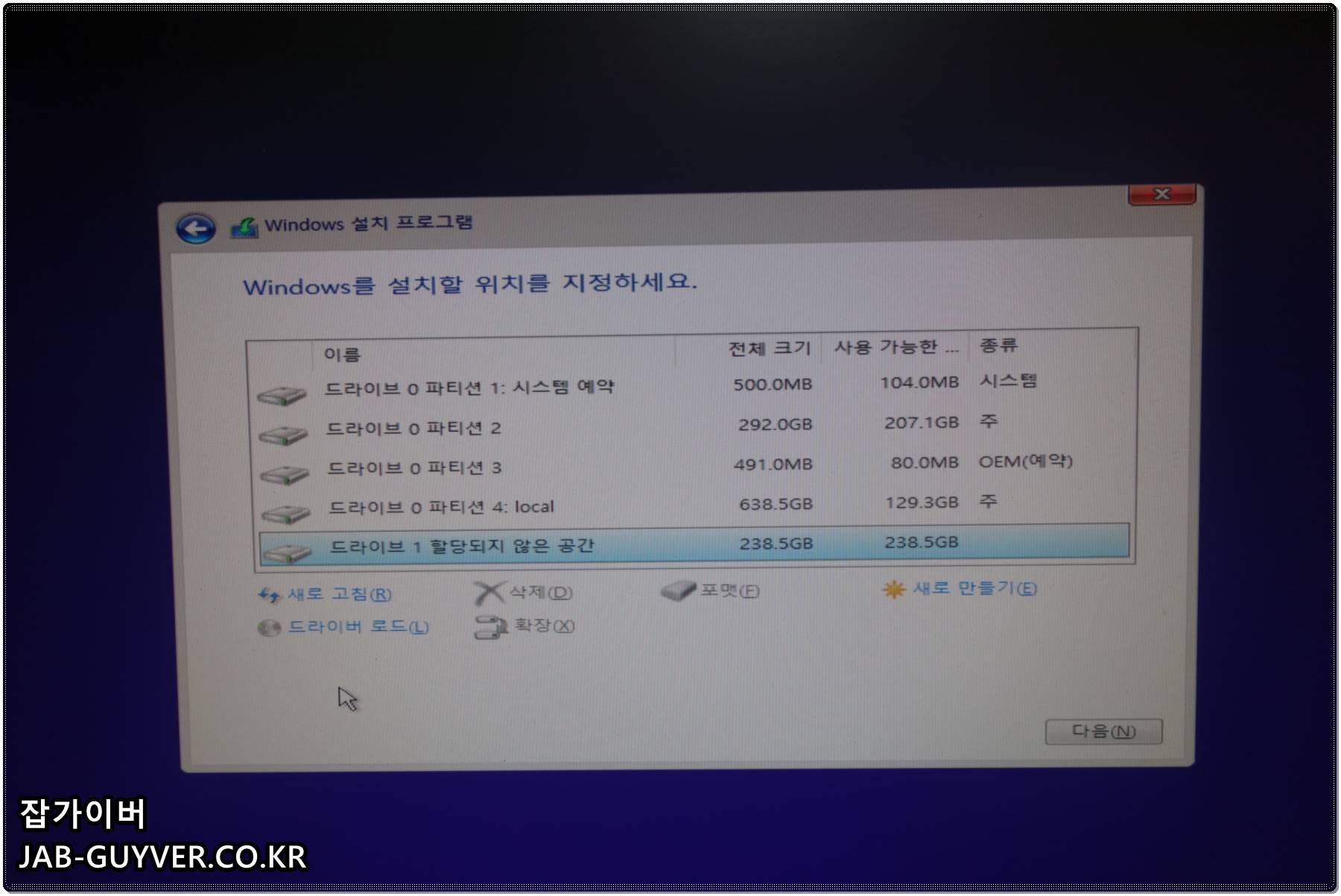 윈도우 설치 드라이버 선택