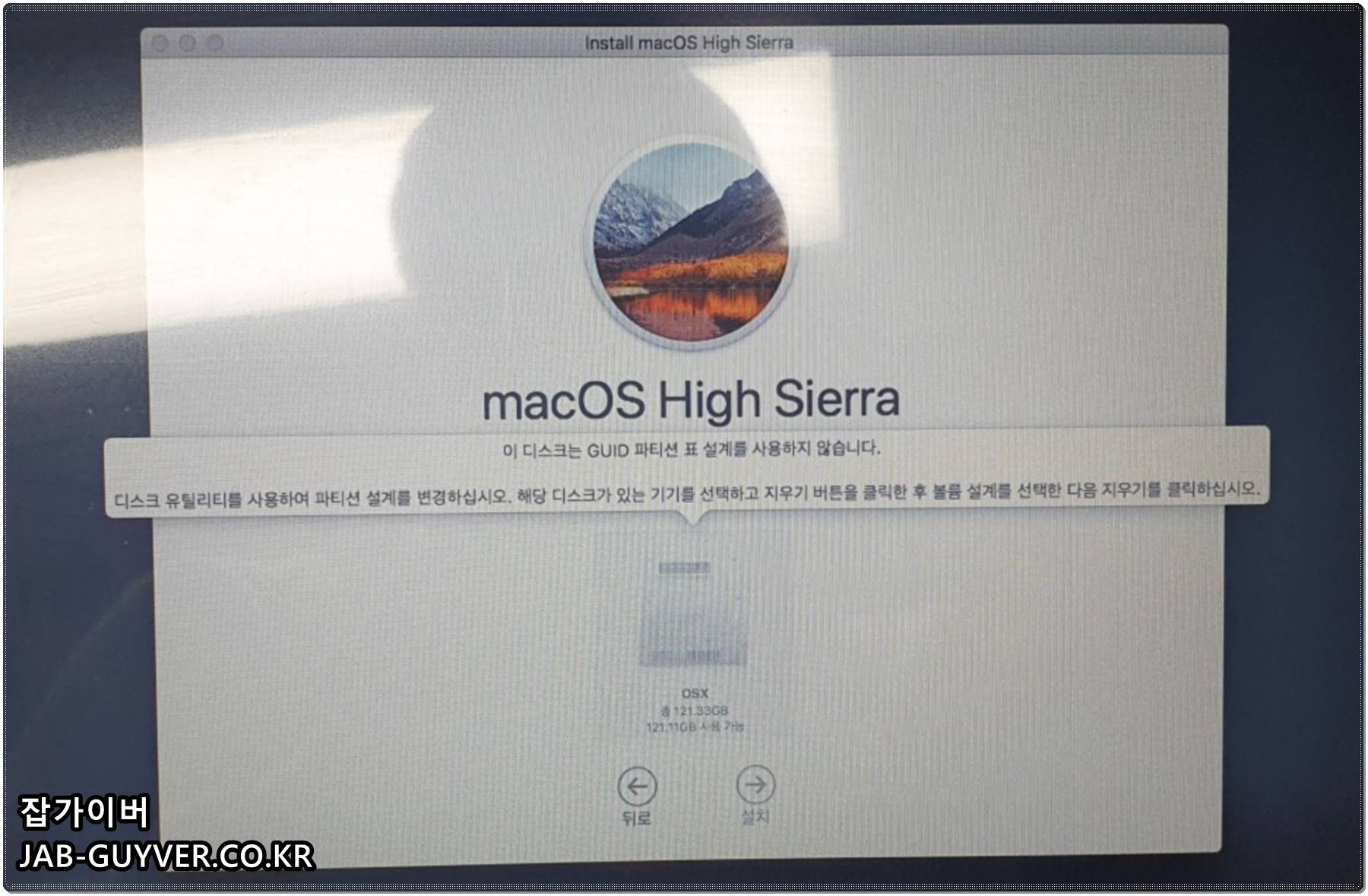 [IT 리뷰/애플 Mac 아이폰] - 맥북 초기화오류 추가 구성요소 다운실패 및 GUID 파티션 설계 GPT MBR 변경