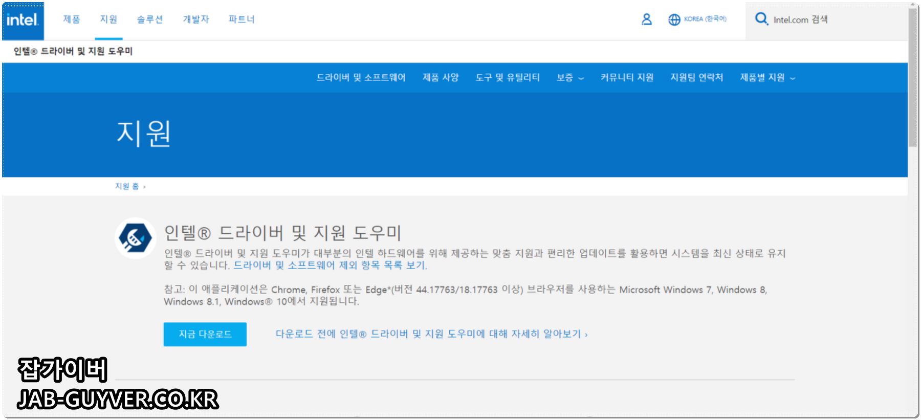 인텔 드라이버 및 지원 도우미 활용