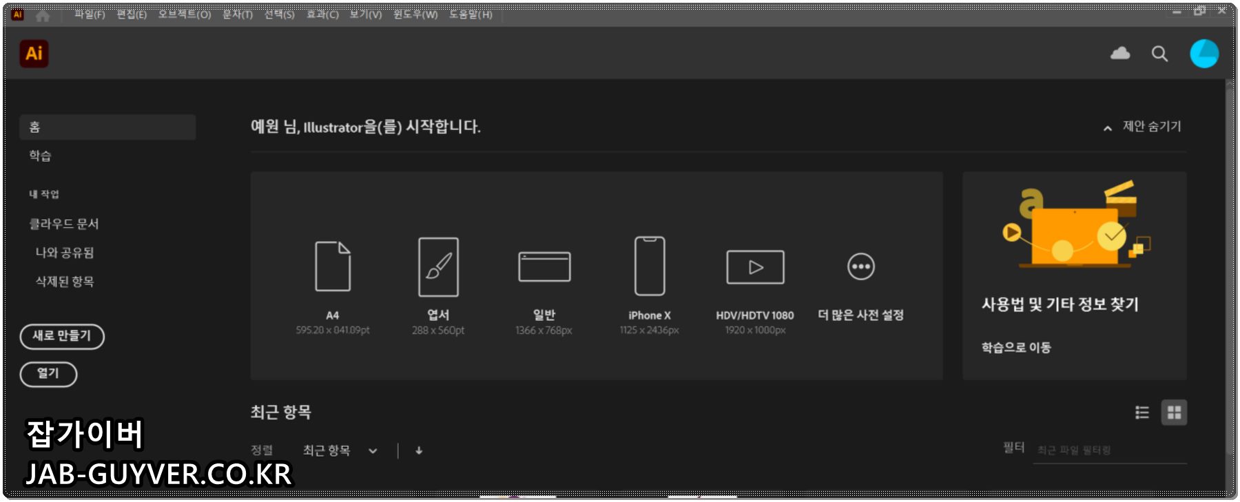 설치가 끝난 다음에는 컴퓨터를 한 번 재부팅해 주고, 다시 일러스트레이터를 실행해 시스템 호환성 보고서가 여전히 뜨는지 확인해 보면 됩니다. 최신 버전으로 올라갔다면 경고가 사라지거나, 적어도 같은 내용의 경고가 반복해서 뜨지는 않는 경우가 많습니다.