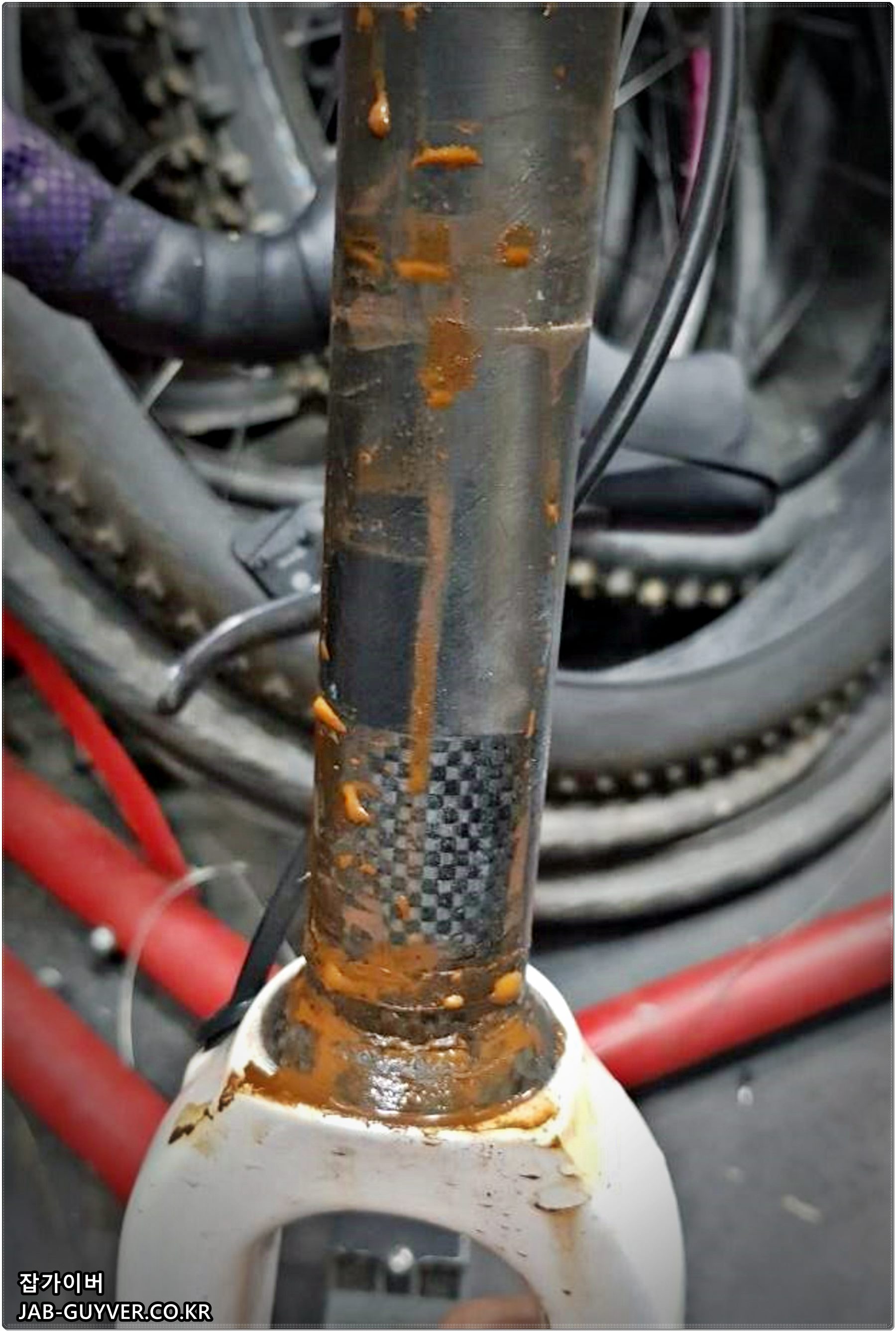 자전거 베어링으로 바퀴 타이어 허브 베어링이나 크랭크 페달 베어링 외에도 우중라이딩을 자주하거나 물세차를 한다면 포크 쪽 헤드튜브 베어링도 정비를 해주세요..