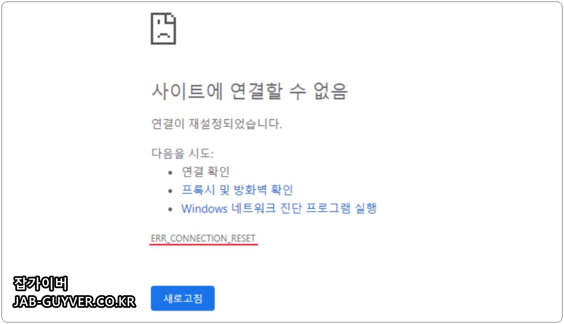 구글크롬 사이트에 연결할 수 없음 ERR_CONNECTION_RESET
