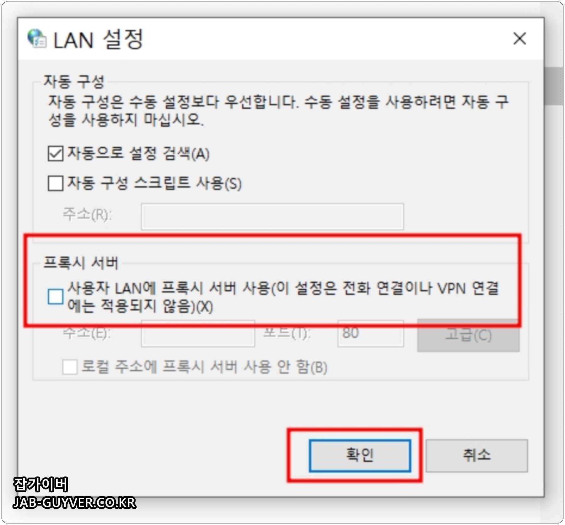인터넷 프록시 서버 비활성화 끄기