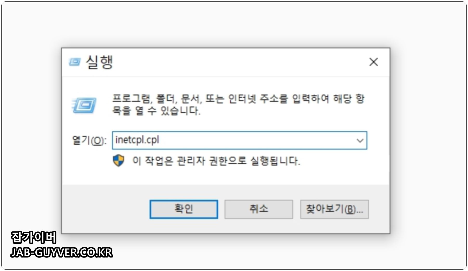 윈도우 키 + R 실행창에 아래 명령어를 입력합니다.