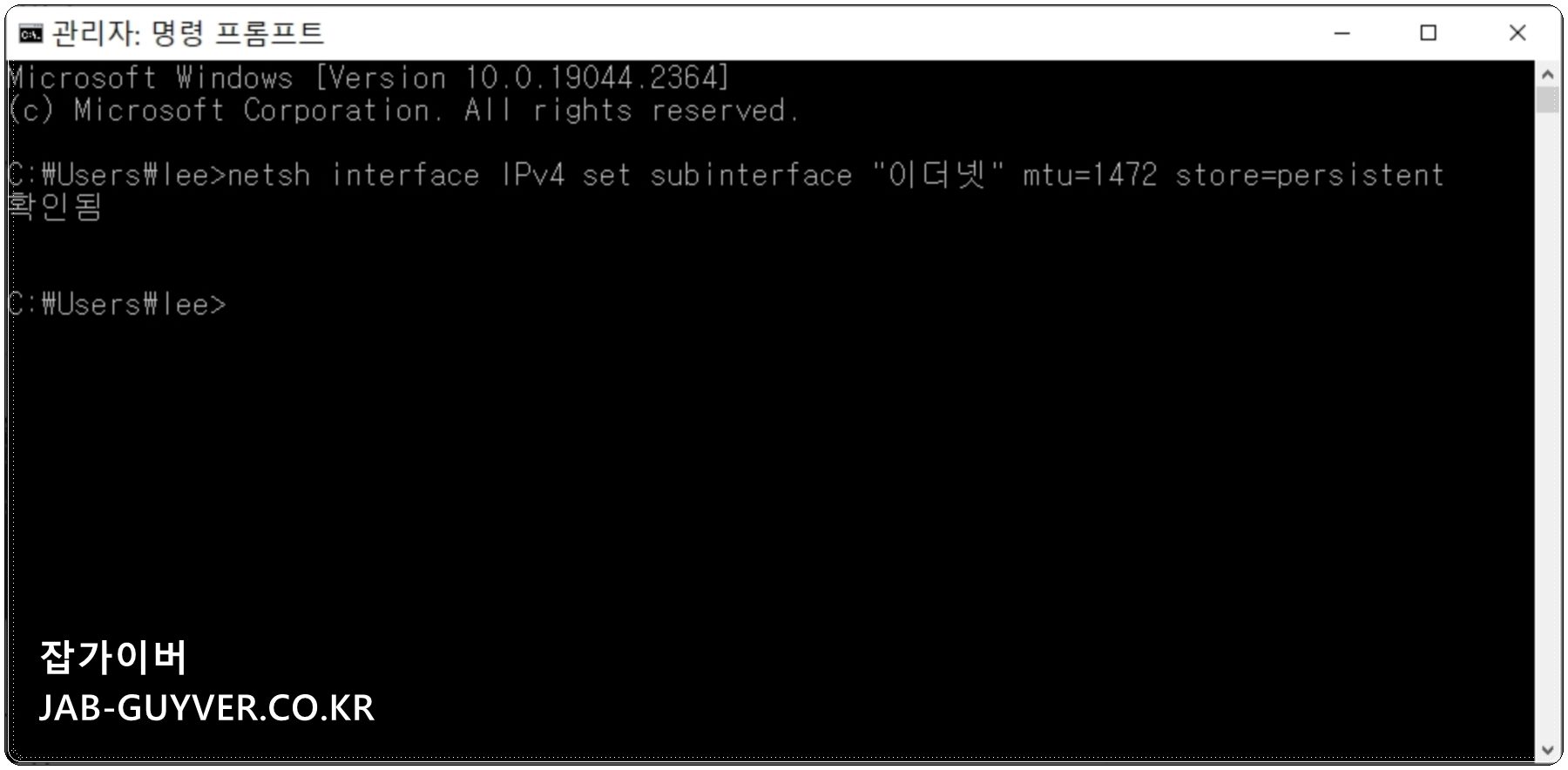 netsh interface IPv4 set subinterface "네트워크 이름" mtu=1472 store=persistent