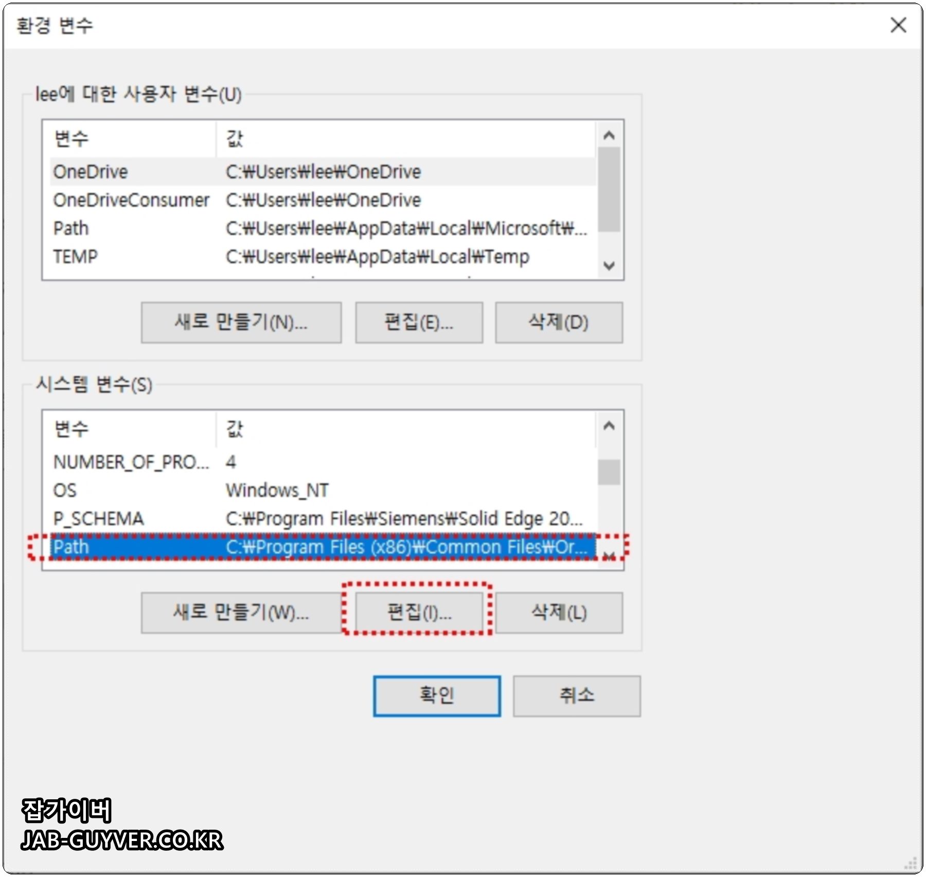 윈도우 환경변수 설정 다시 확인하기