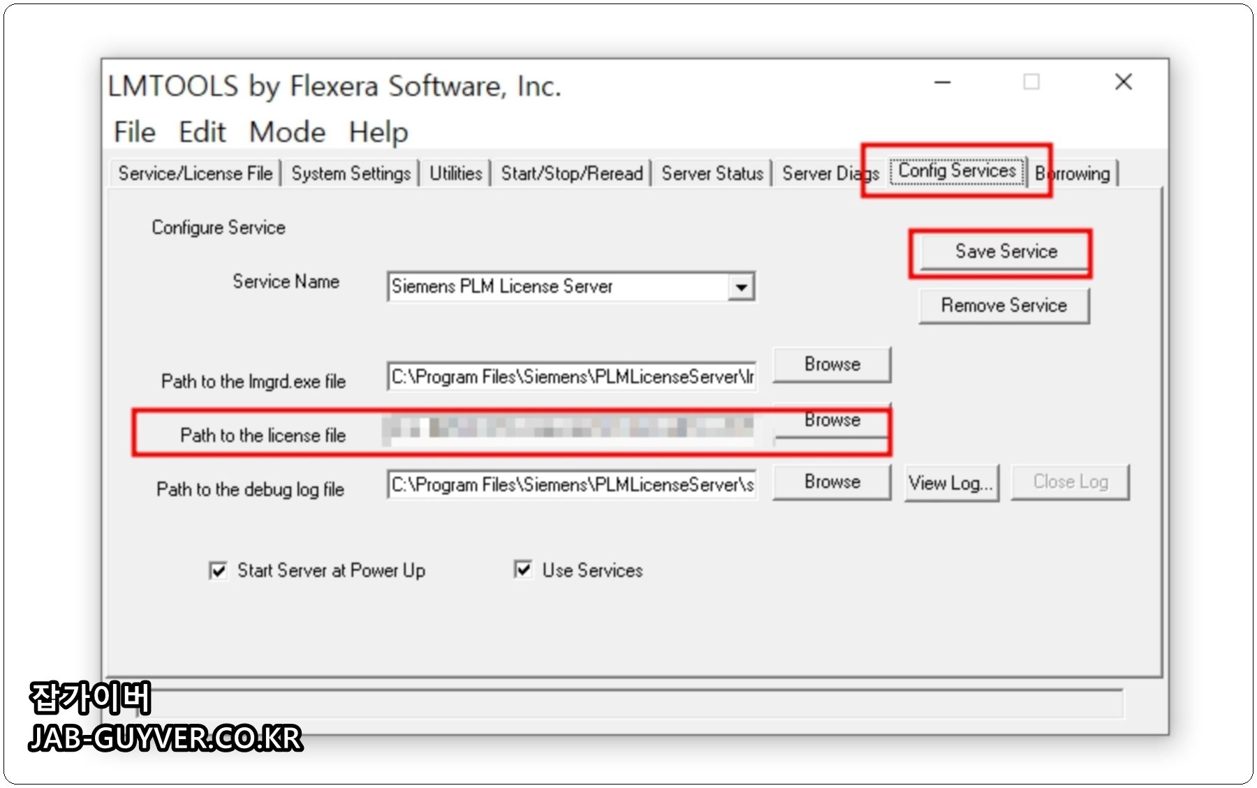 | Config Services | lmgrd 경로, 라이센스 파일 경로, 로그 파일 경로가 정확한지 확인 |