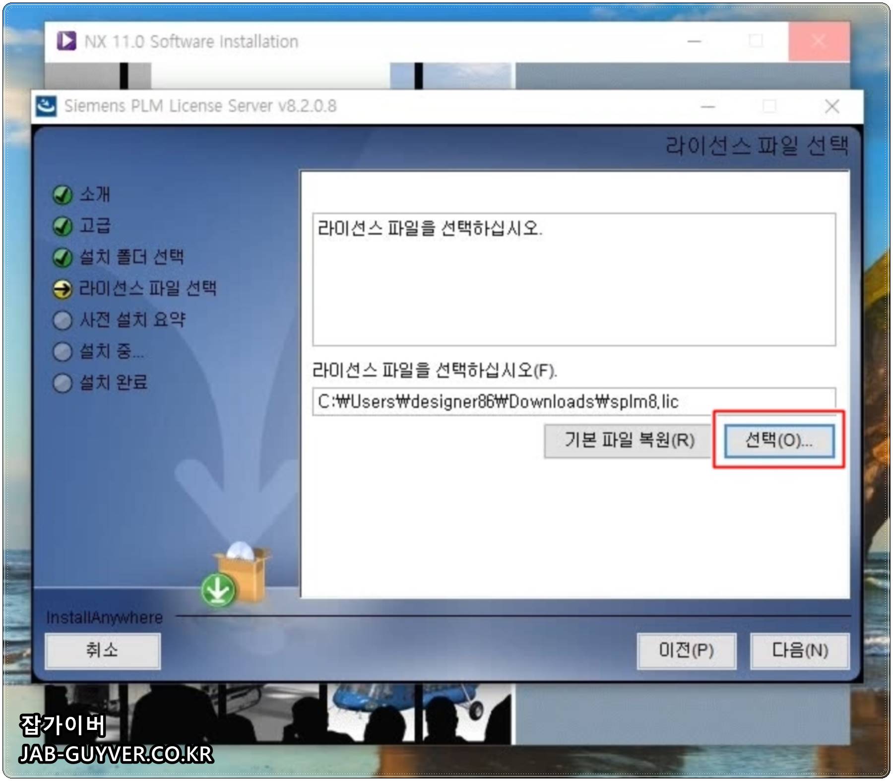 NX 설치 시 라이센스 파일을 선택해야 합니다.