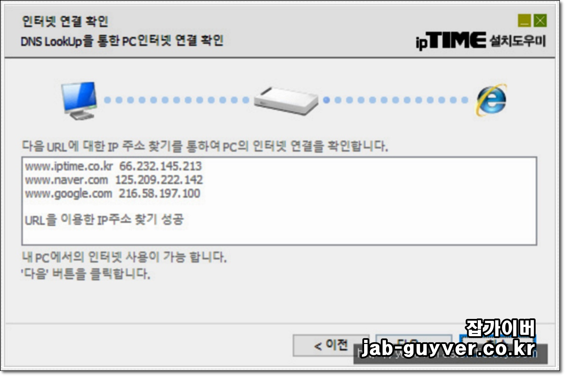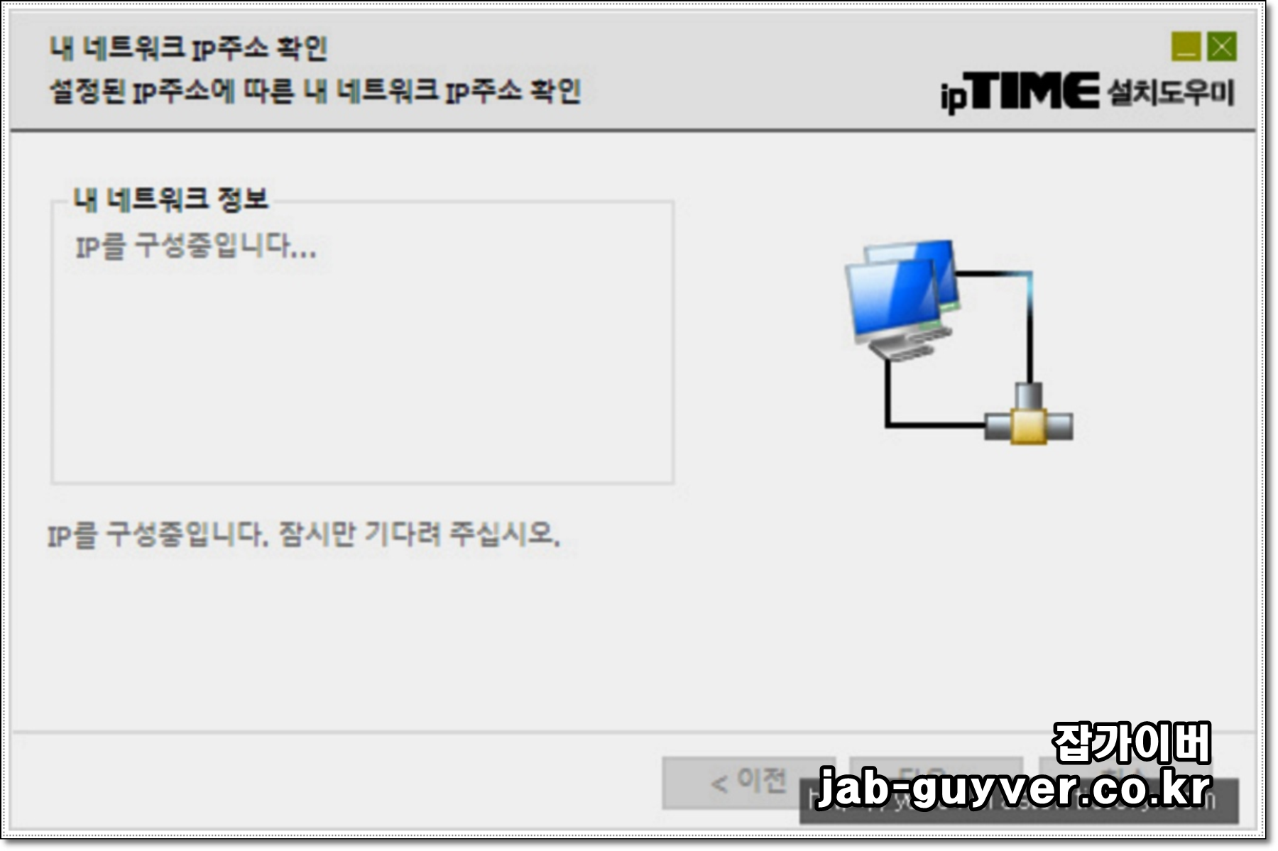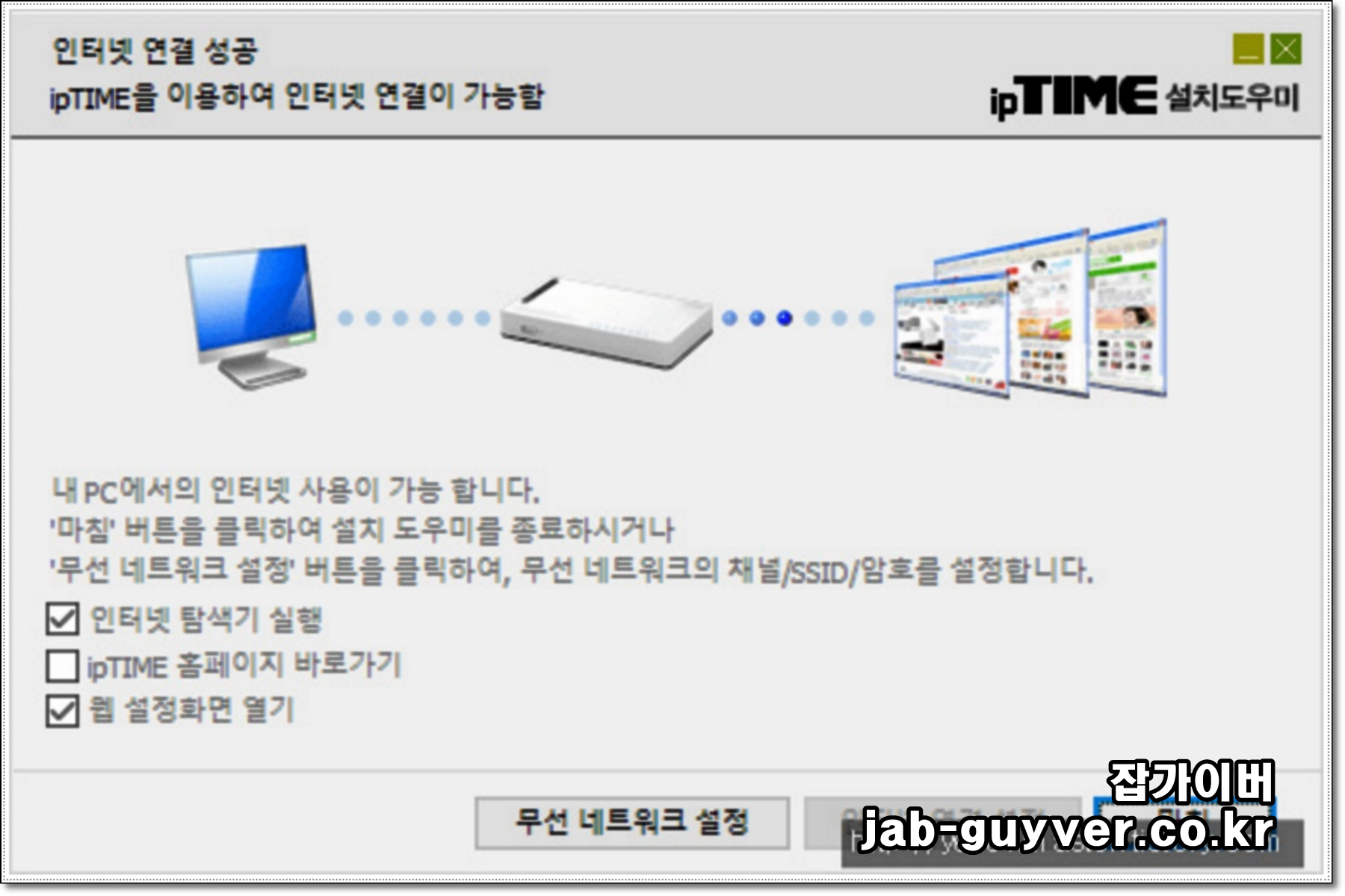 아이피타임 공유기와 pc와 연결되어 있는지 확인하고 공유기 설정 도우미를 설치합니다.