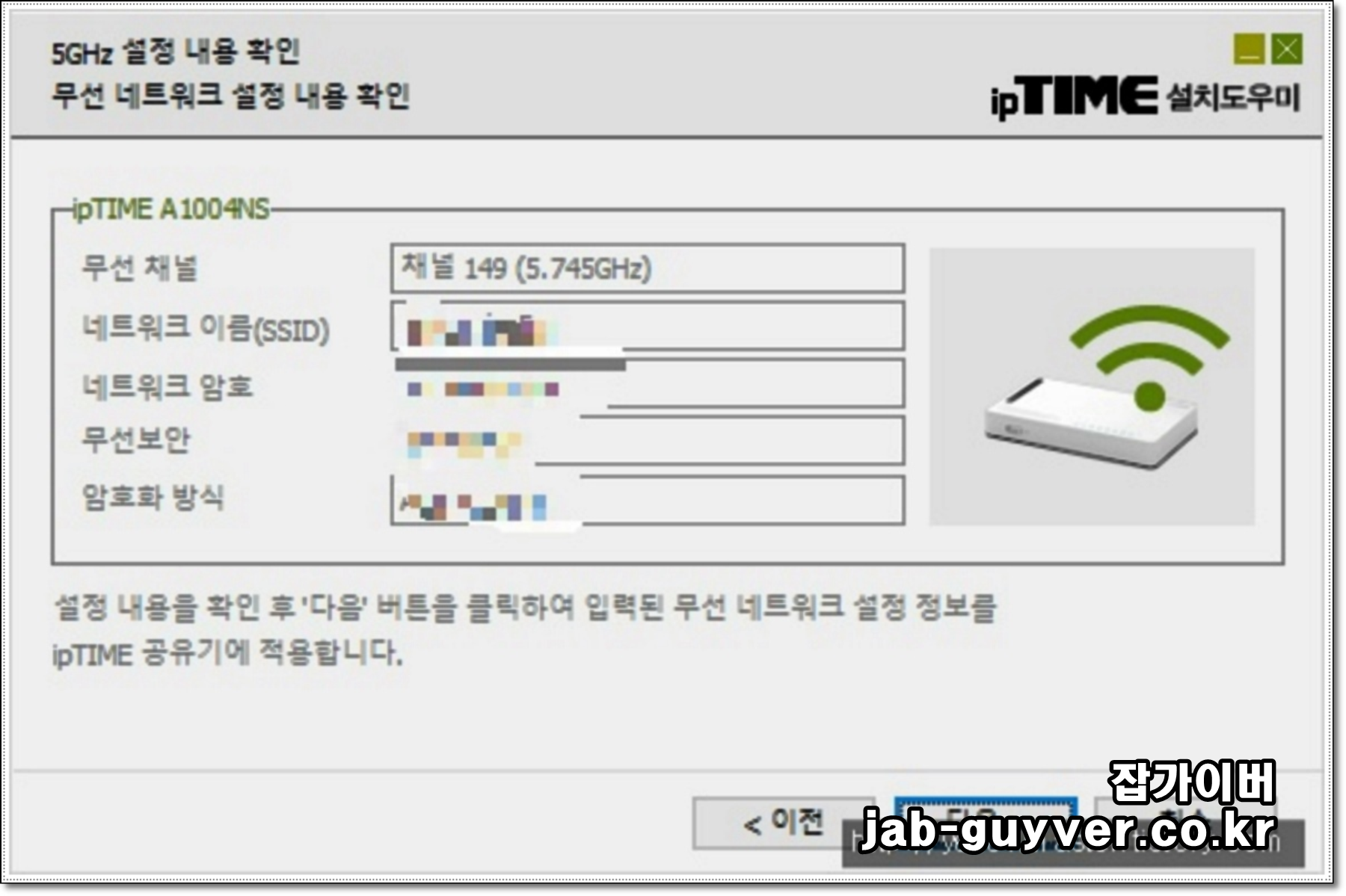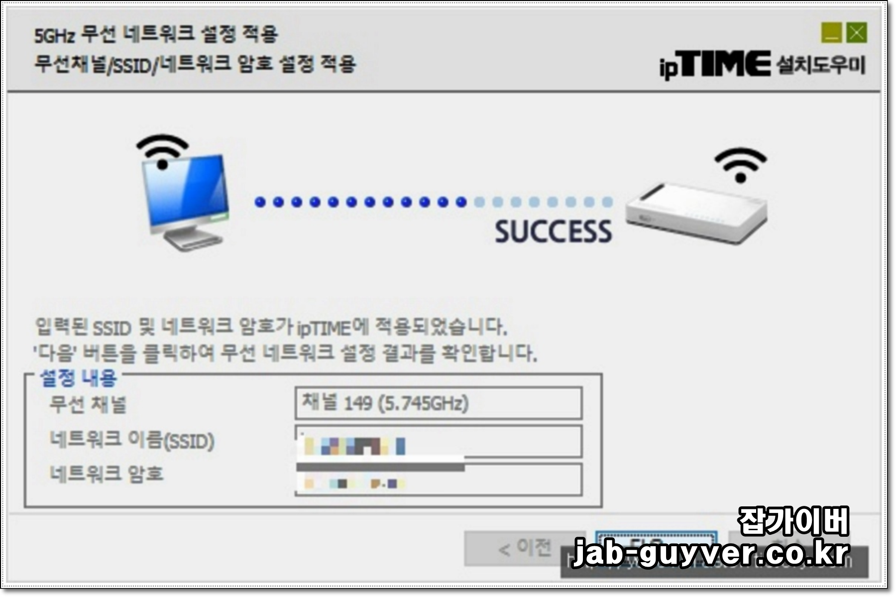 ipTime 설치도우미를 통해 펌웨어 업데이트 및 유선 인터넷 설정이 완료되었다면 무선 와이파이 네트워크를 설정합니다.