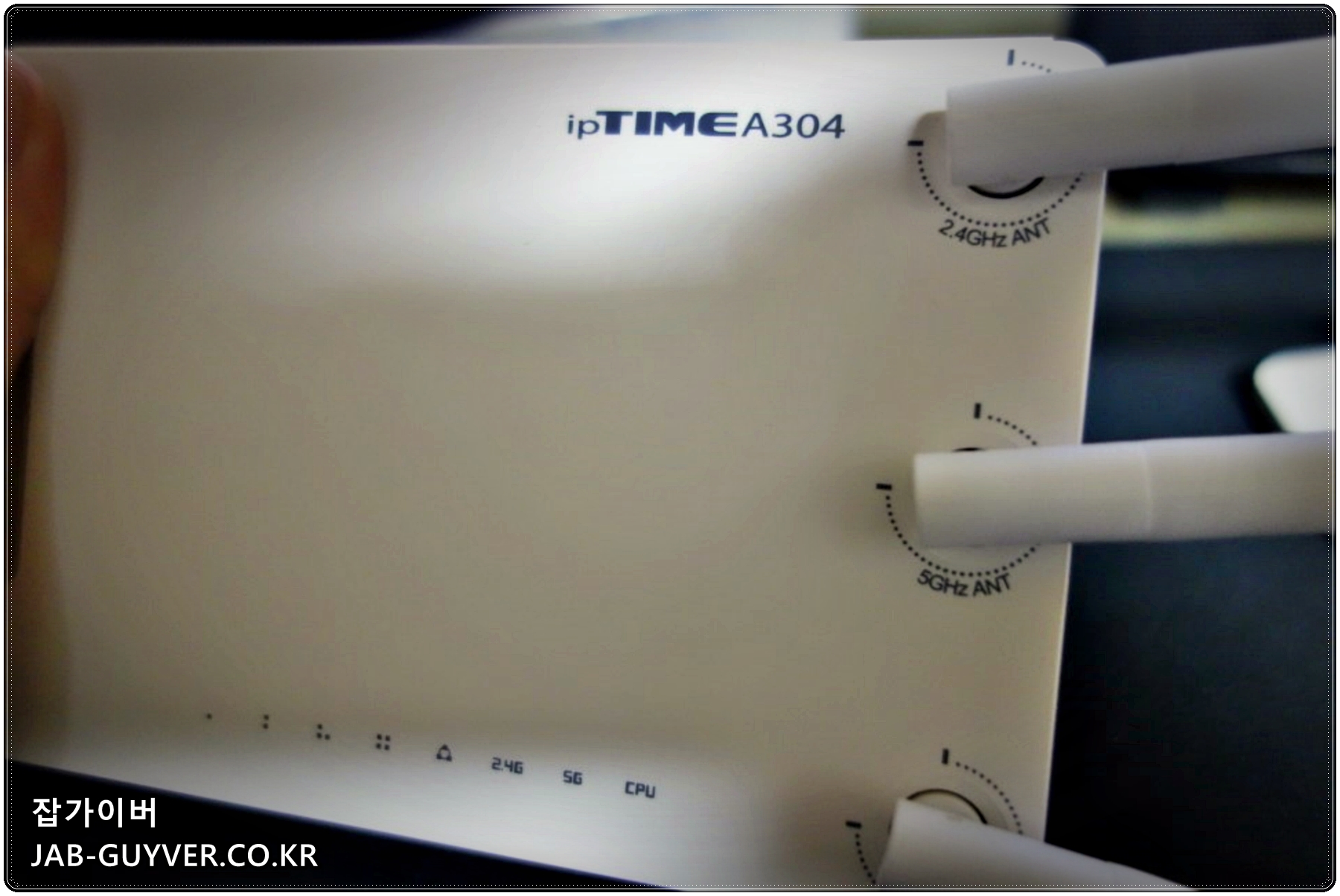 공유기 안테나를 보면 2.4Ghz와 5Ghz 안테나가 있는데 이는 iPtime 공유기에 2g 와이파이와 5g 와이파이 2개를 동시에 지원한다는것을 의미합니다.
