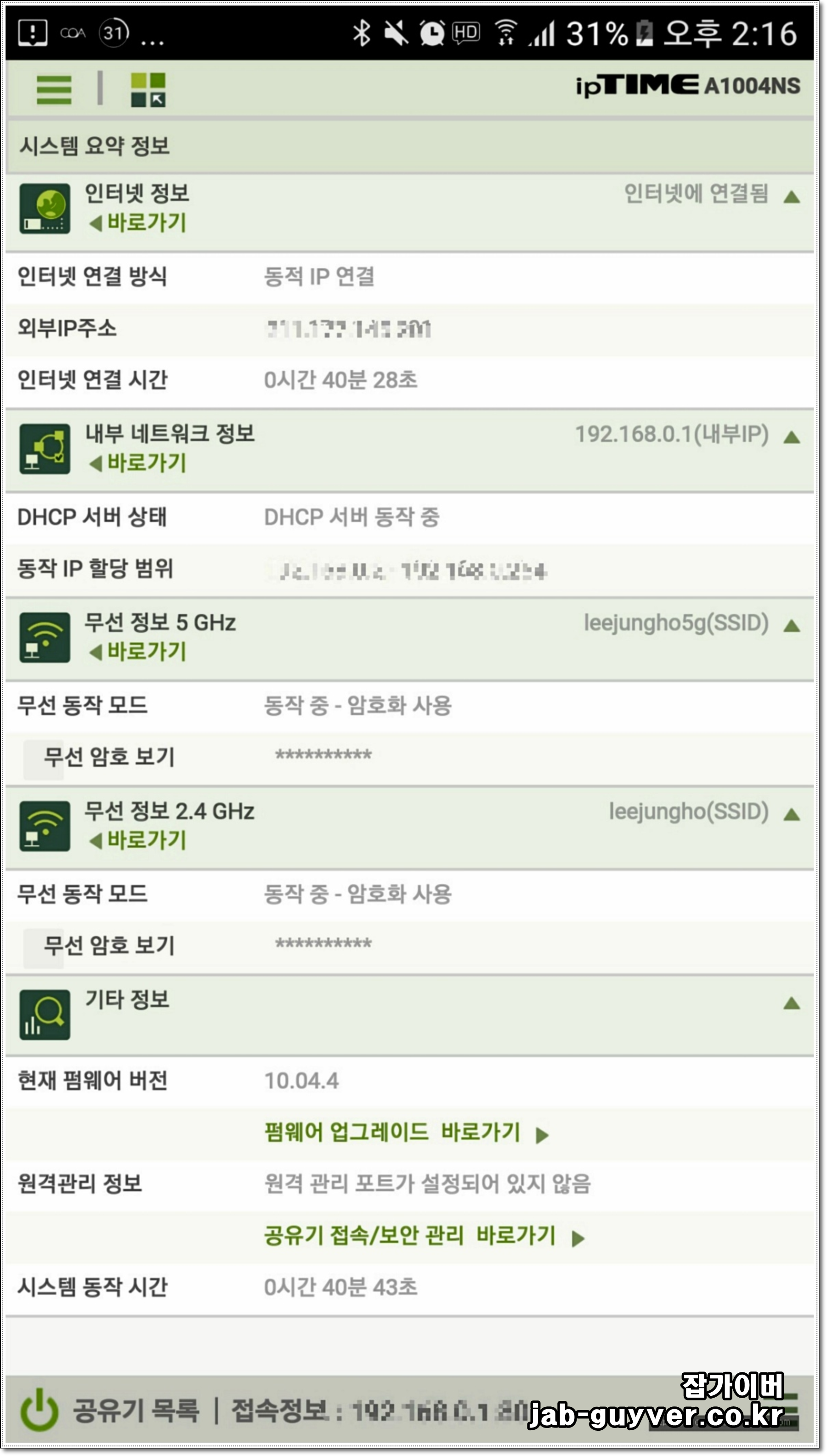 우선 기존에 사용하던 IpTime a1004ns 공유기에서 A304 공유기를 교체했습니다.