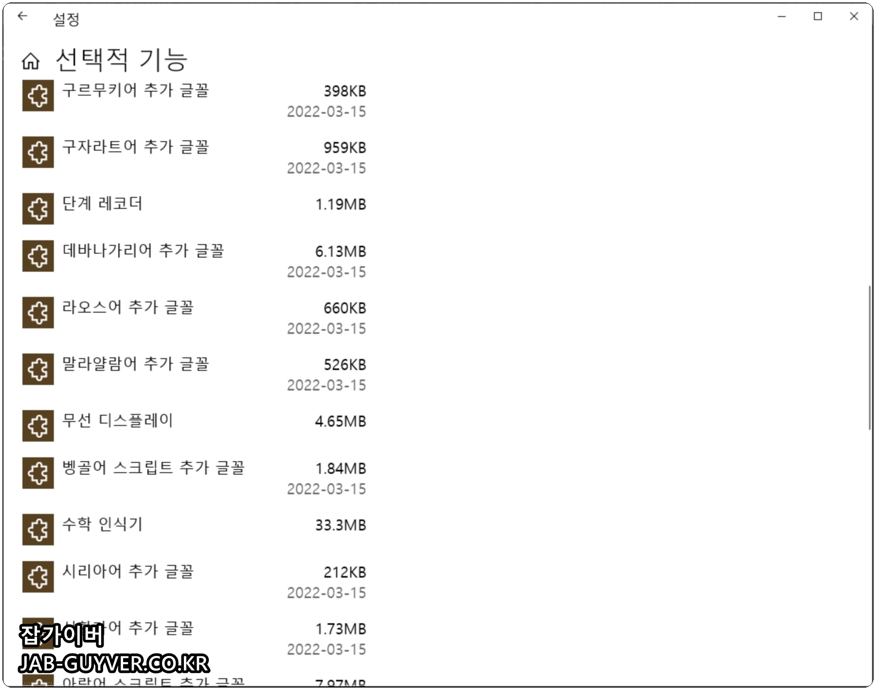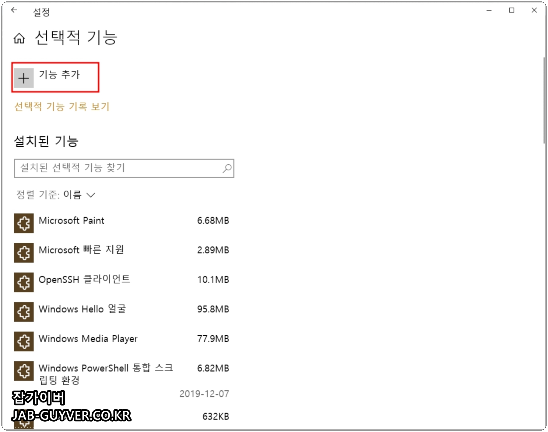 윈도우에서 제공하는 이러한 선택적 기능에서 각기능의 누락된 항목을 설명을 참고해서 필요한 앱을 추가 설치할 수 있습니다.
