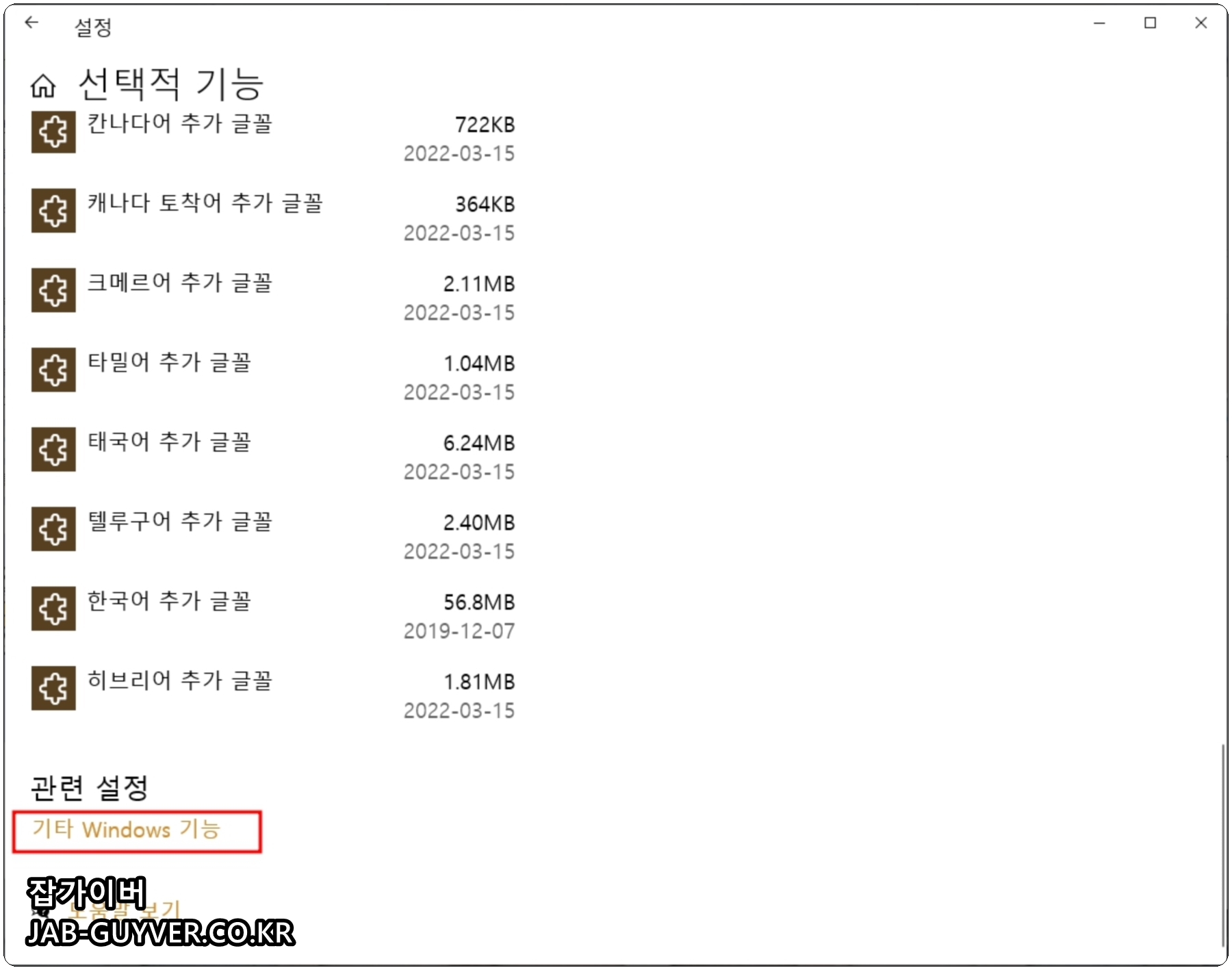 기타 각 나라별 글꼴 폰트등이 설치되어 있으며 이 외에 기능등일 설치에 누락되어 있다면 추가로 설치합니다.