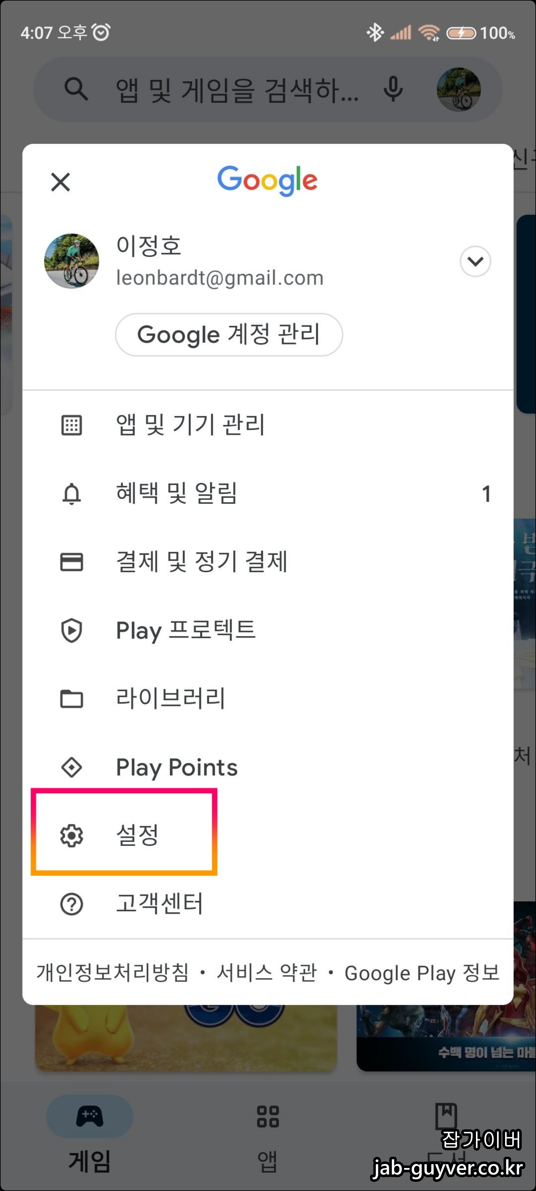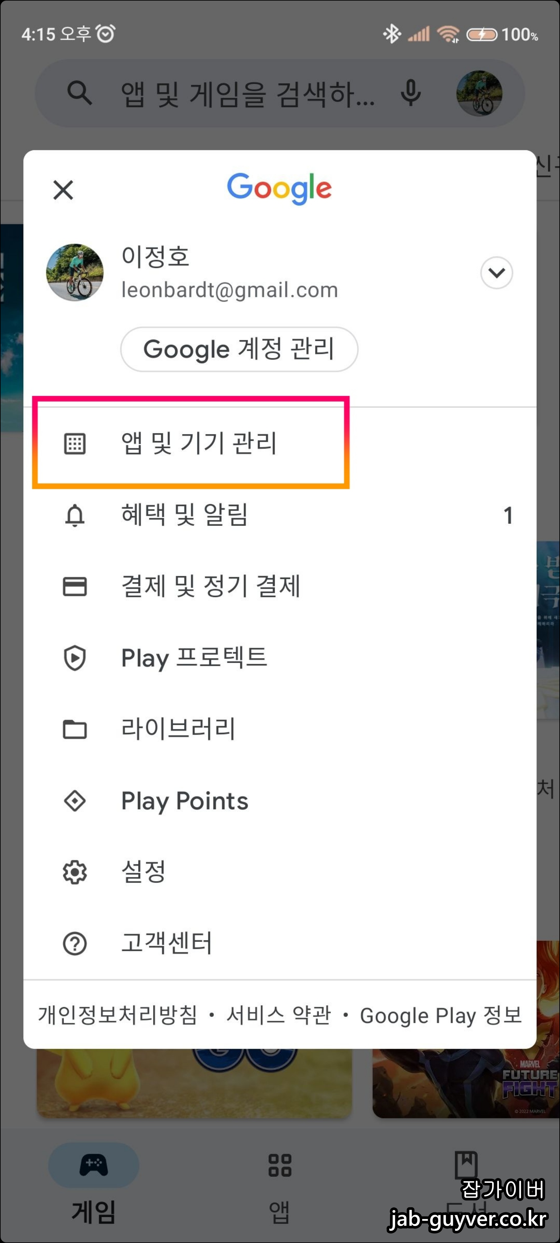 현재 안드로이드 앱 모두 업데이트 하고 싶다면 플레이스토어 설정 -> 앱 및 기기관리로 들어가 대기중에 있는 업데이트 항목을 모두 업데이트 합니다.