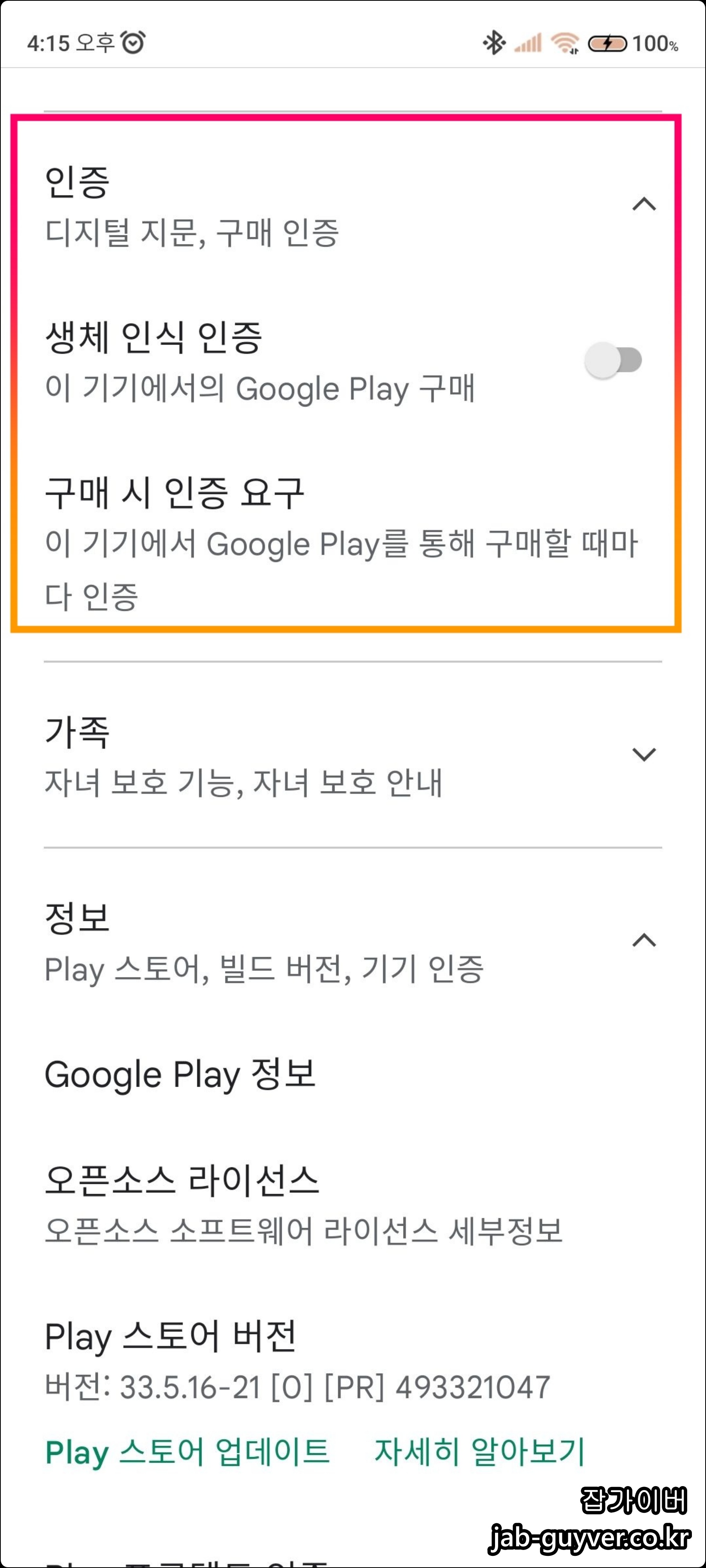 정보 : Play 스토어 빌드버전 및 기기인증