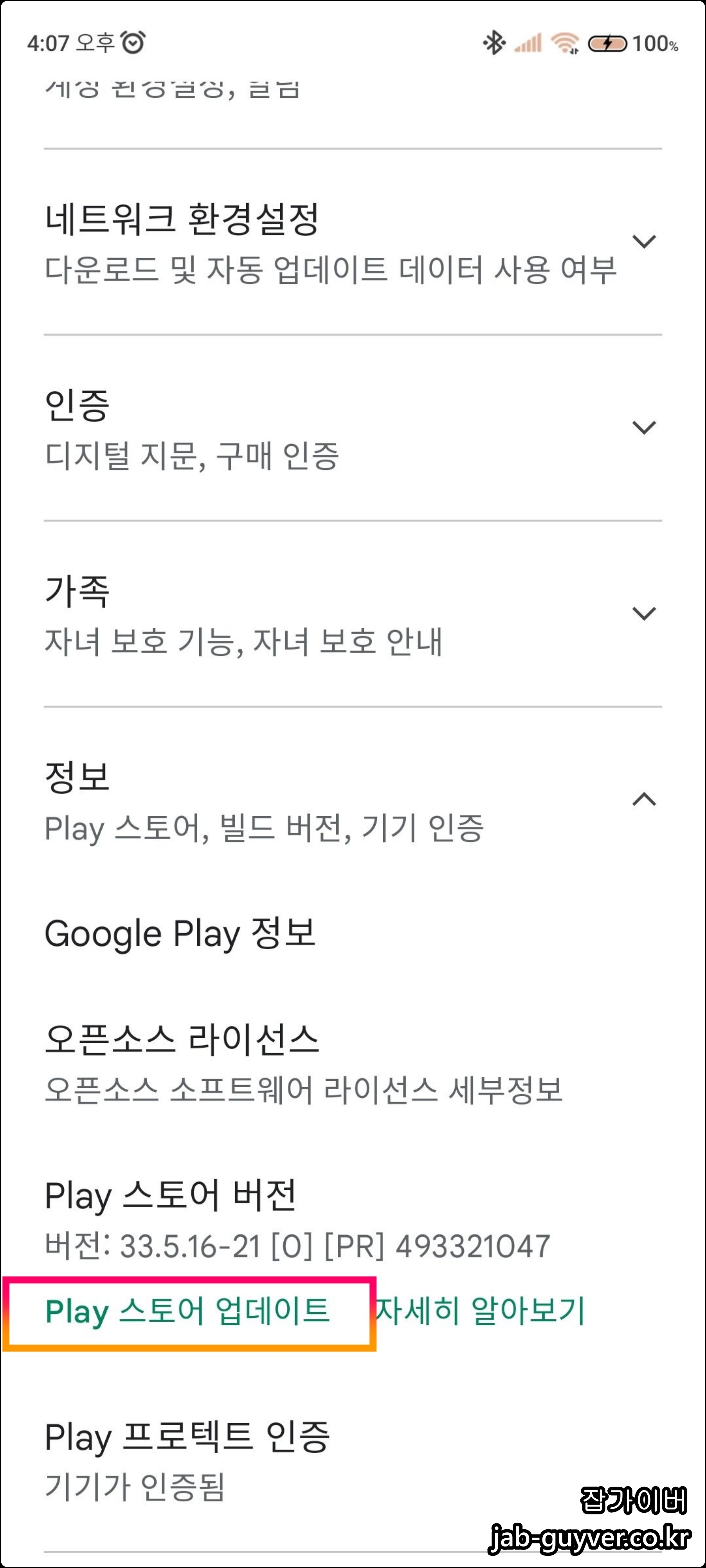 Play 스토어 버전 확인