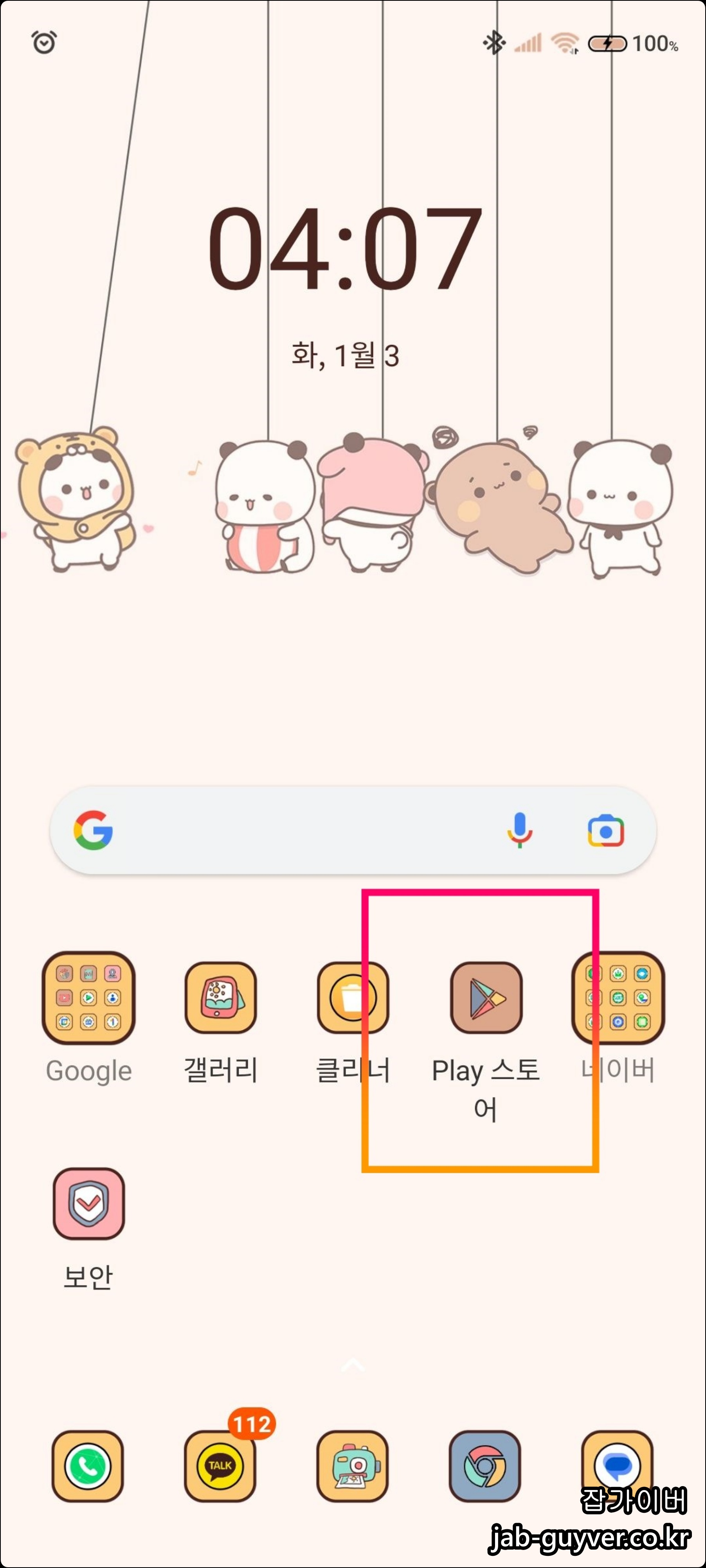 구글 플레이스토어 "Play Store"를 실행하며 이 경우 구글계정에 로그인이 되어 있어야 합니다.