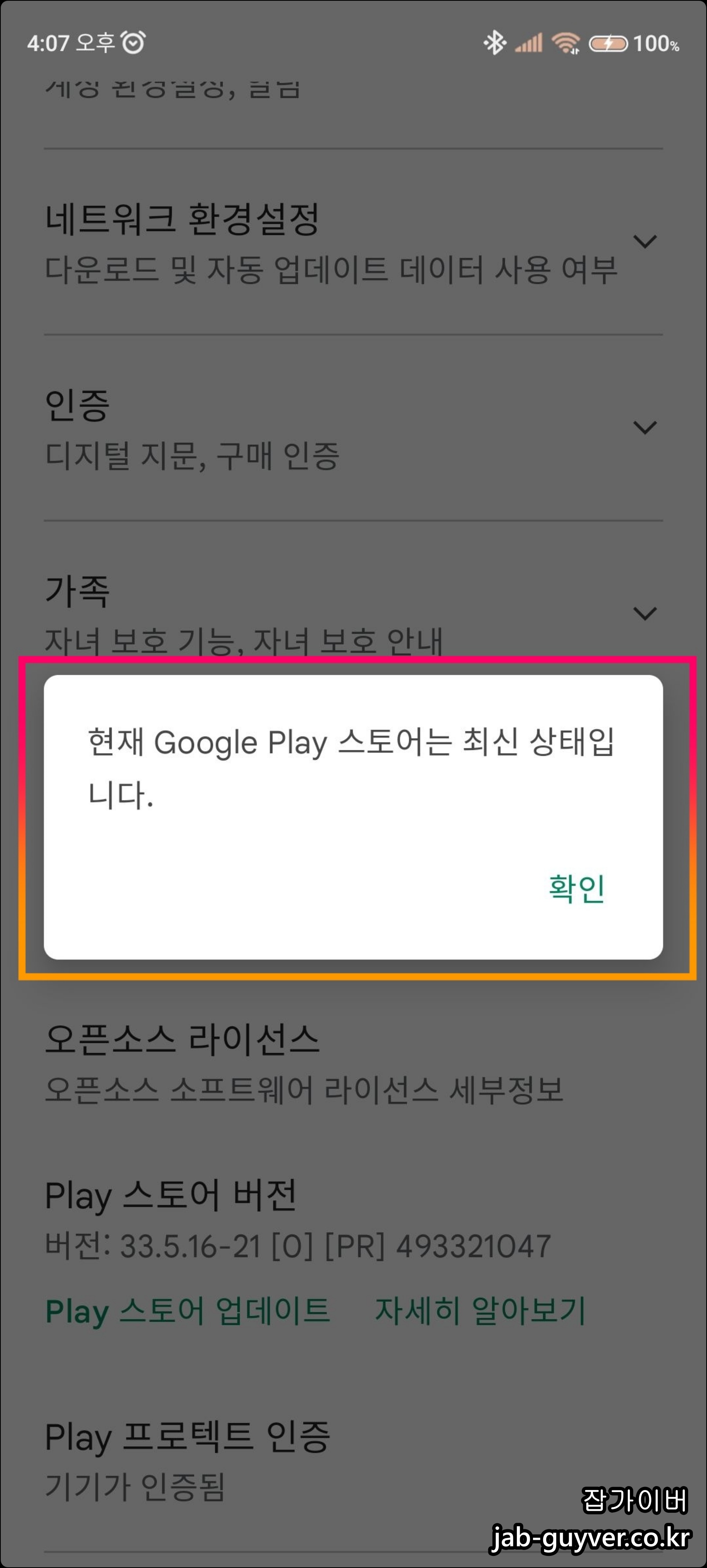 정보 : Play 스토어 빌드버전 및 기기인증