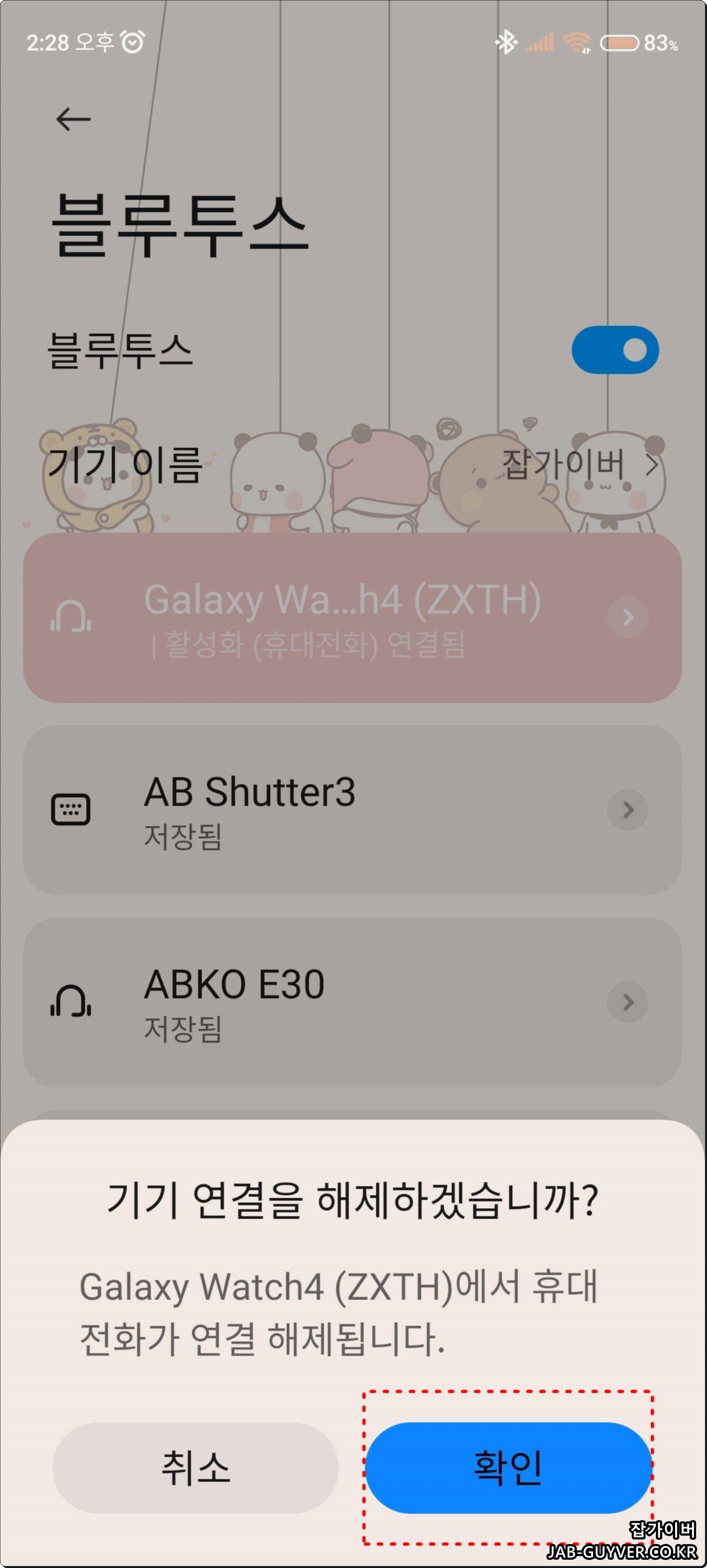 갤럭시워치 블루투스 페어링 해제 후 재연결하는 방법