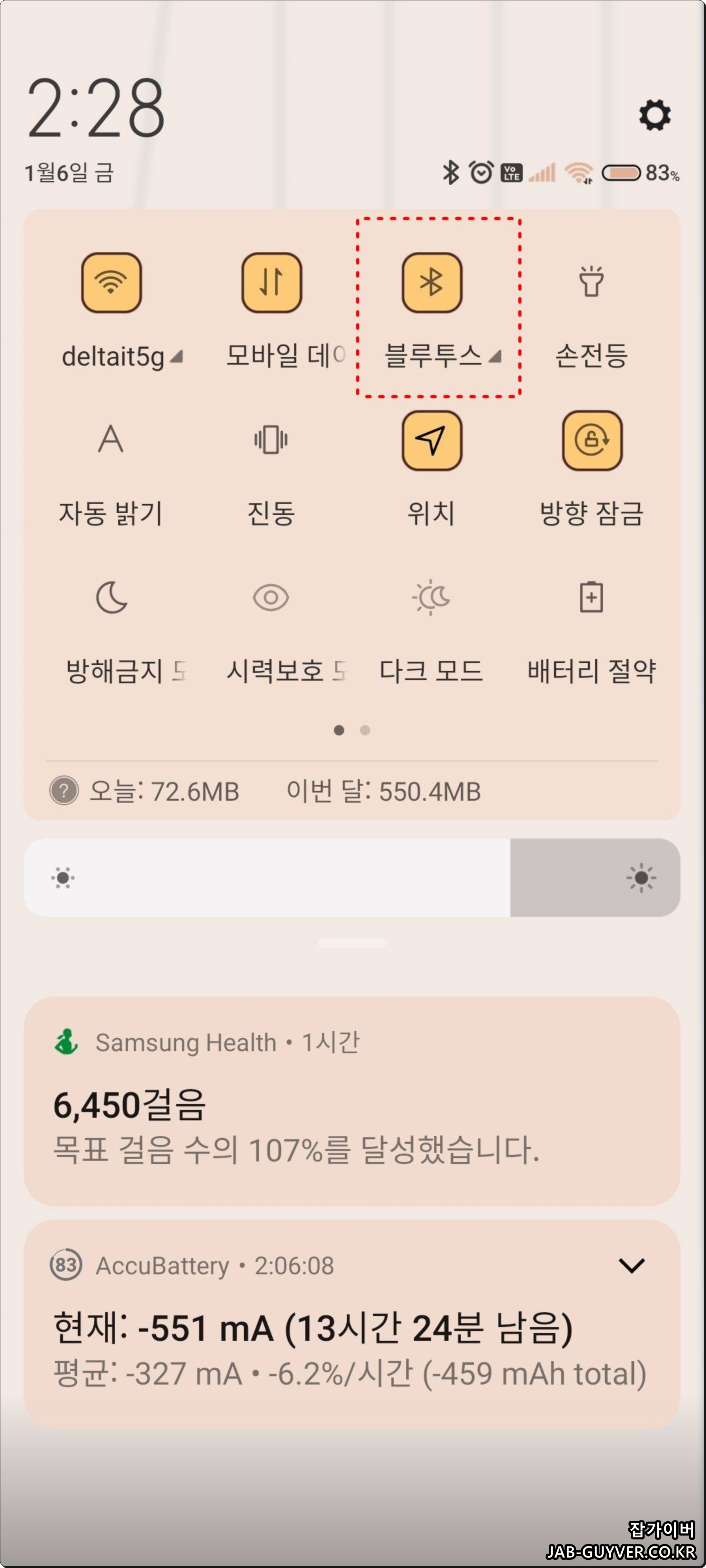 앱 설치가 끝났다면 스마트폰 상단바에서 블루투스가 켜져 있는지 먼저 확인하고, 갤럭시워치에서도 설정 메뉴에서 블루투스를 켜 둡니다. 아주 기본적인 부분이지만, 연결 문제의 상당수가 여기서 막히는 경우가 많습니다.