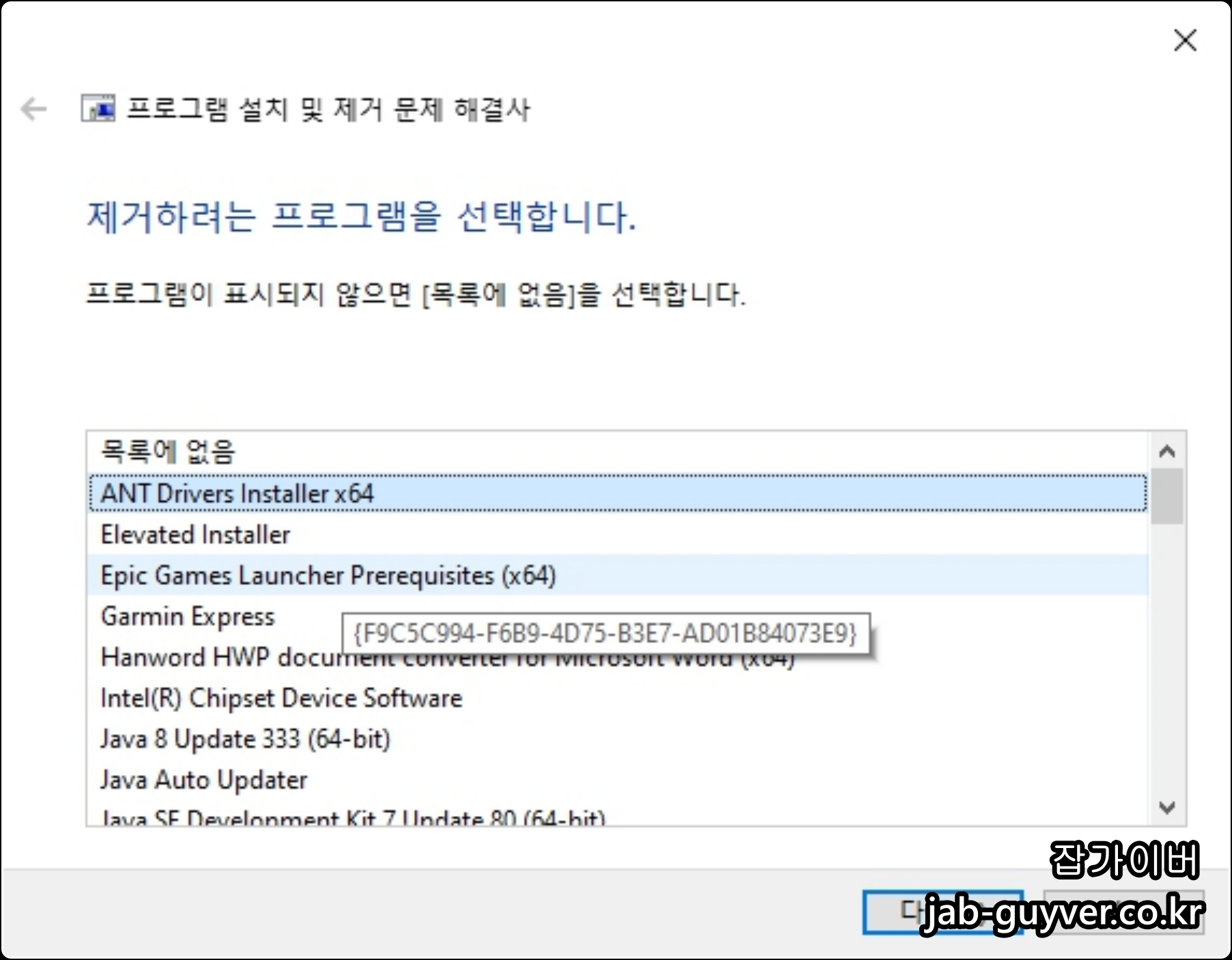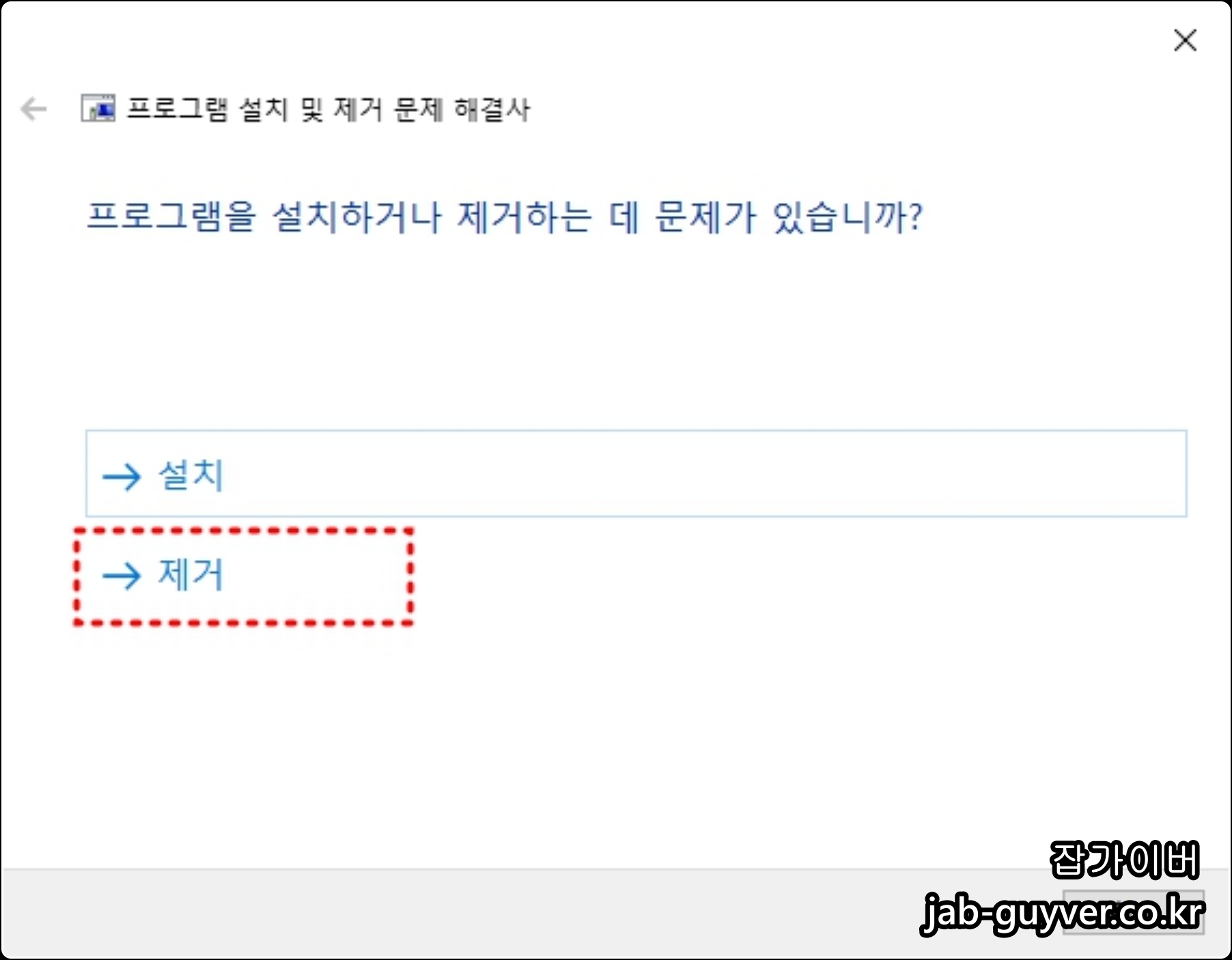 이럴 땐 Microsoft의 <strong>Program Install and Uninstall Troubleshooter</strong>를 이용해 강제 제거해야 합니다.