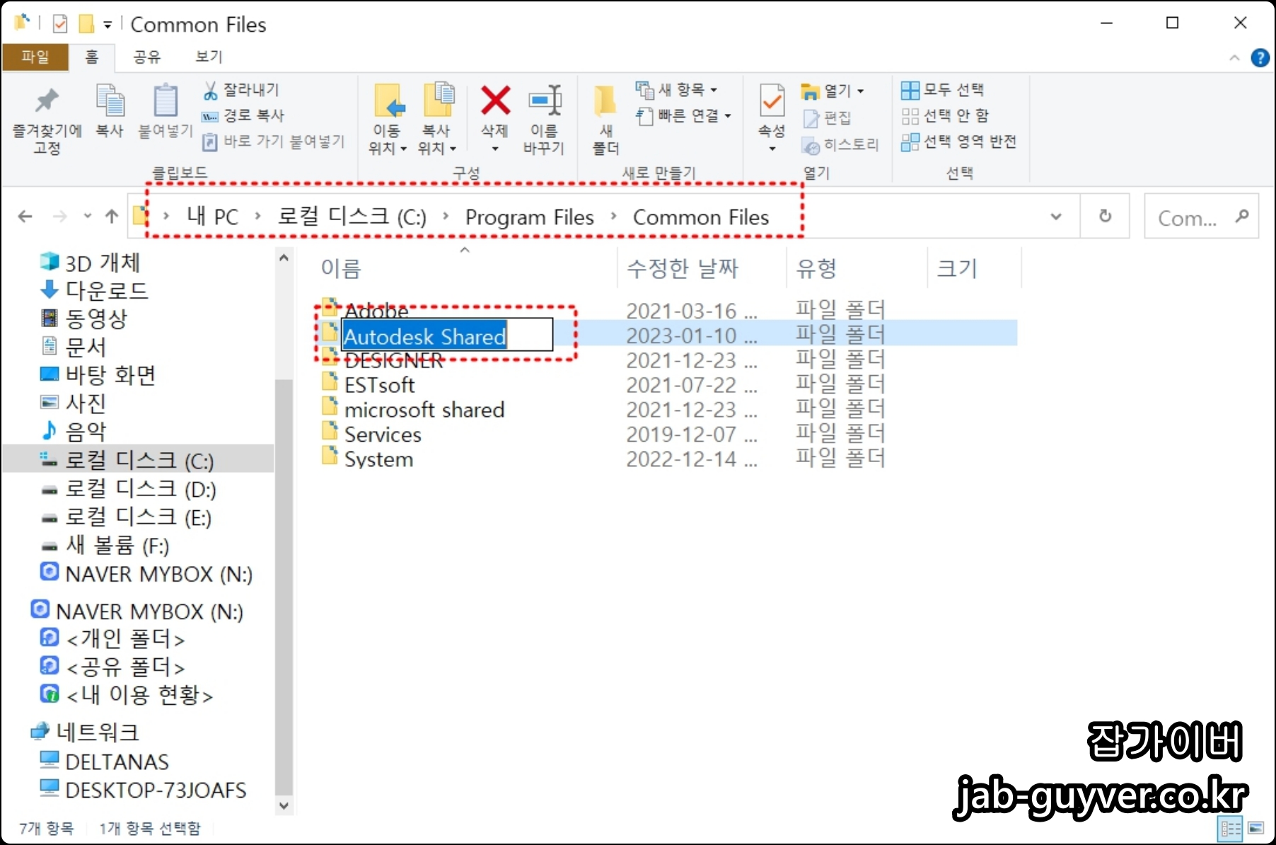 마지막으로 C드라이브의 커몬파일에 있는 오토데스크 쉐어드를 삭제합니다.