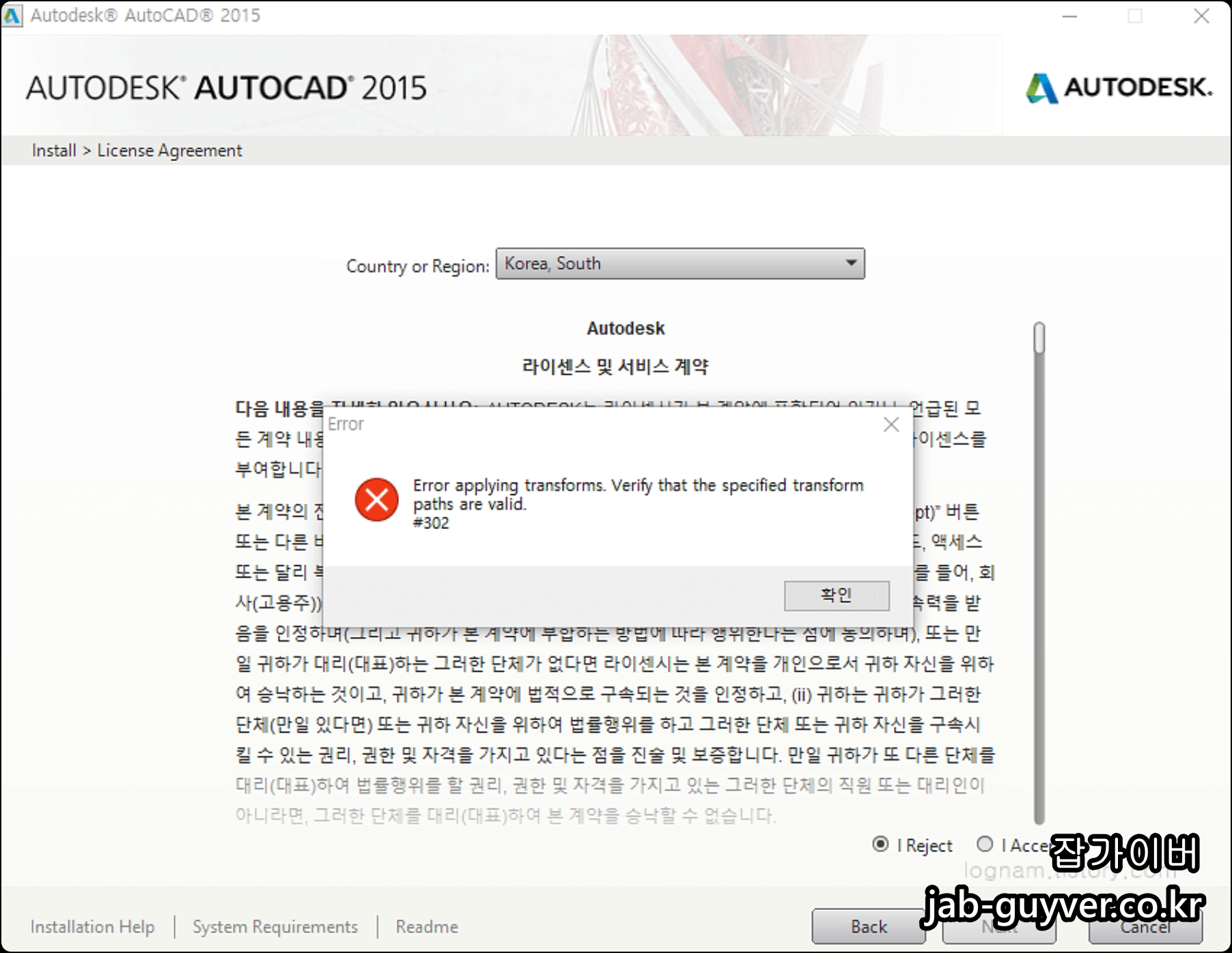 Autodesk AutoCAD 2015를 초기화하지 못했습니다